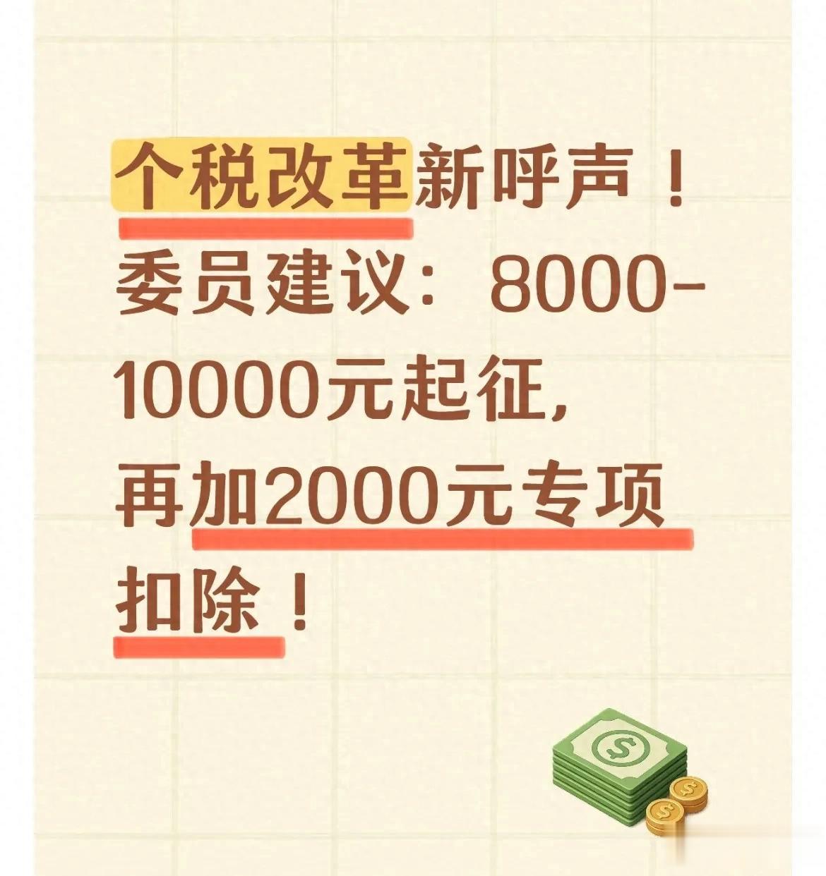 每个月发工资先扣一笔个税,房贷、养娃、赡养老人样样都要花钱,普通工薪族到手收入总觉得不够用。围绕个税减负的呼声一直很高,2026年全国两会上,多位委员聚焦民生税负,公开提出建议,将个税起征点提高到8000元至10000元,同时新增专项附加扣除项目或提高现有扣除额度,让更多普通家庭少缴税、多留钱。