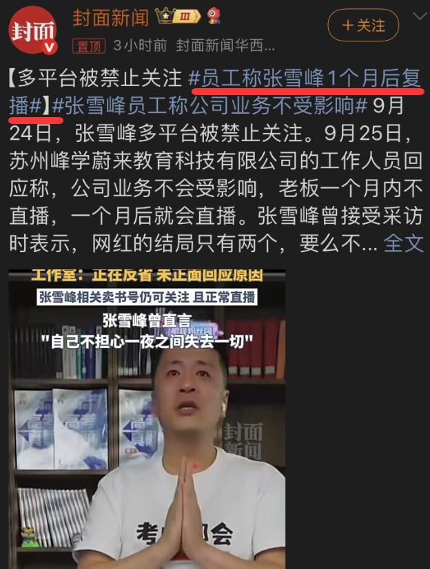 当然,这对于张雪峰来说谈不上灭顶之灾,只不过是小惩大戒。