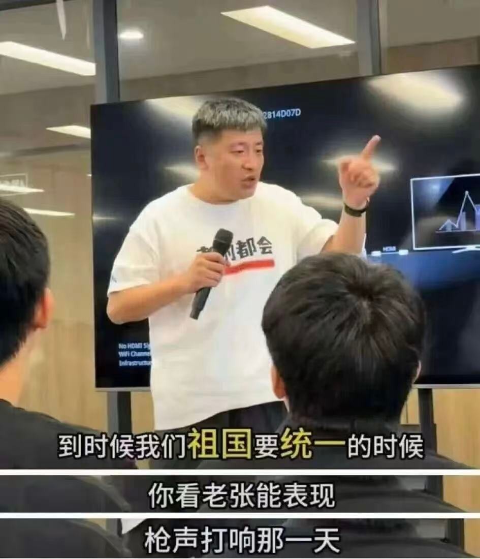 9月3日,张雪峰在观看阅兵时有点激动到飘了:“若祖国统一战争枪声打响,我个人至少捐5000万,公司整体捐1个亿!我公司账上永远备着这笔钱!”