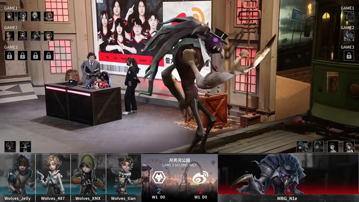 成都Wolves的求生者选择了冒险家、小说家、大副、火灾调查员(BAN时空之影);北京WBG的监管者N1e选择了“喧嚣”。(BAN空军、入殓师、古董商、气象学家)
