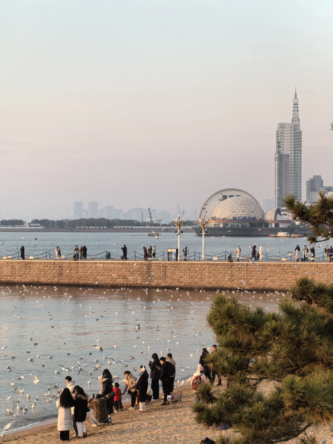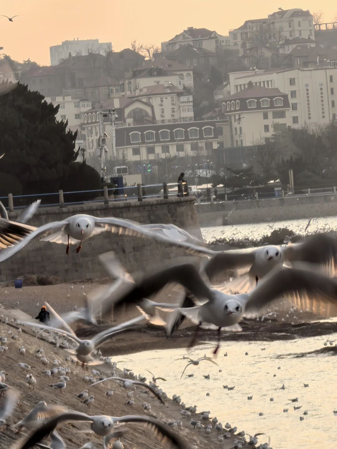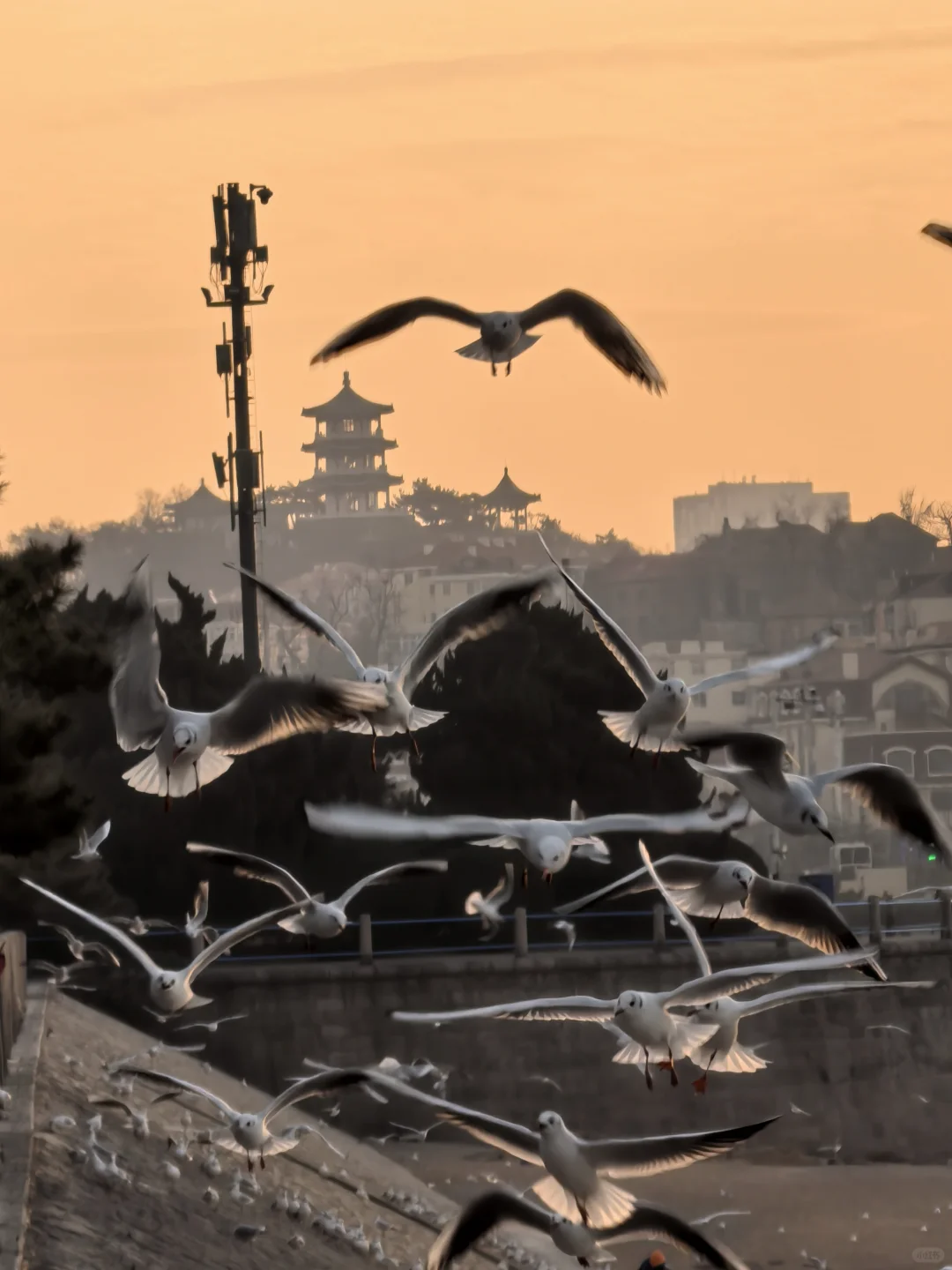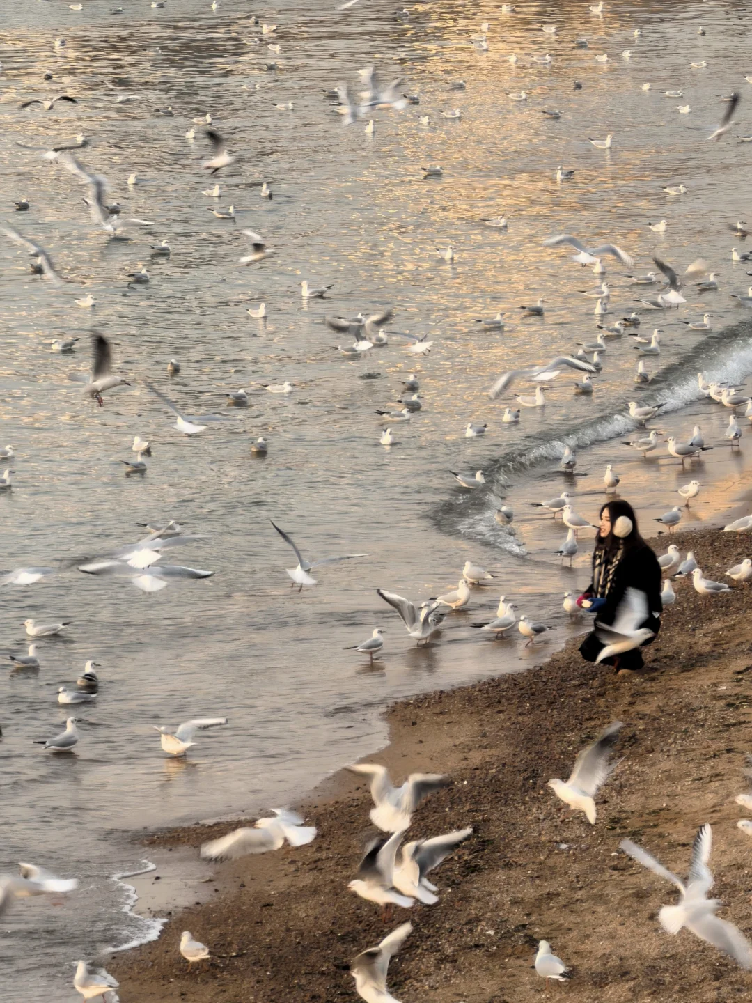 12.20青岛栈桥海鸥 与海鸥逗趣的方式有很多