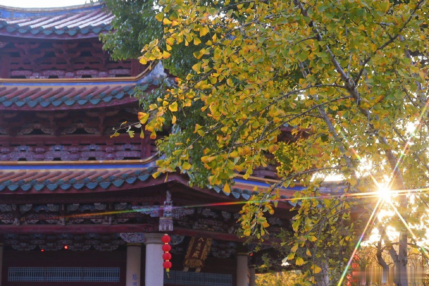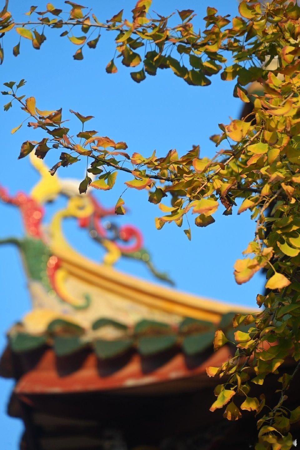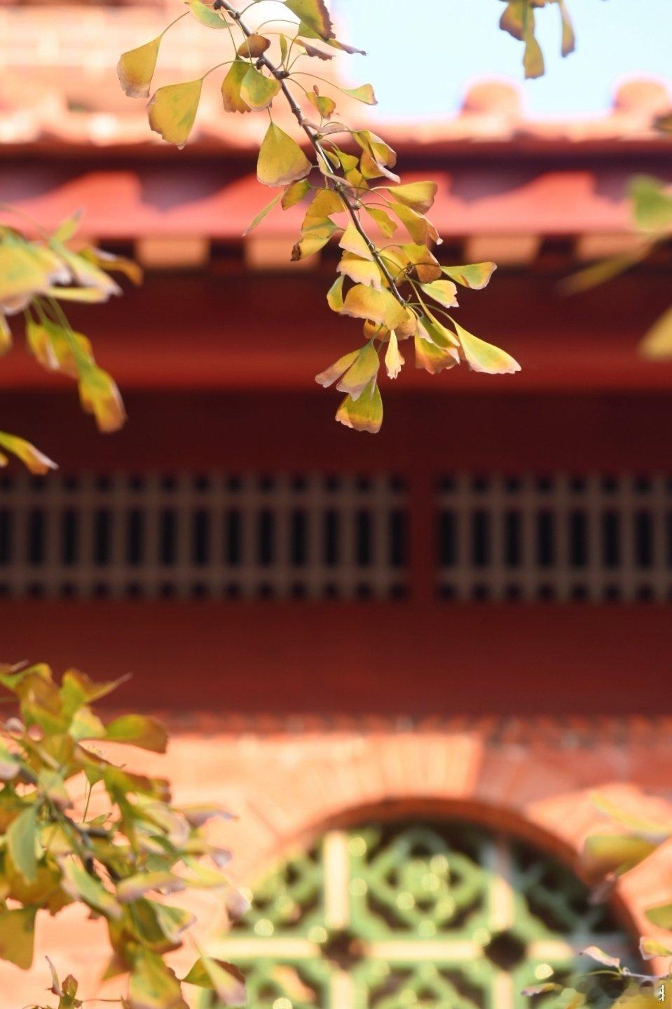 泉州承天寺银杏开始变黄了 冬至日,承天寺赏银杏,有黄叶也有绿叶,在寺庙红墙琉璃瓦的衬托下,形成红黄绿相映成趣的景像。 泉州[超话] via:
