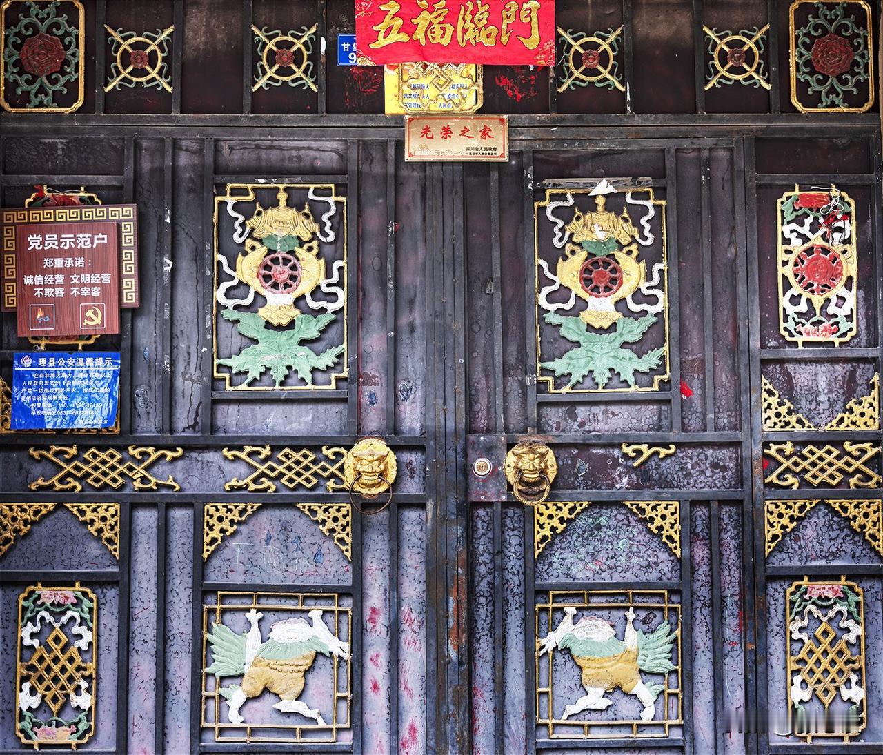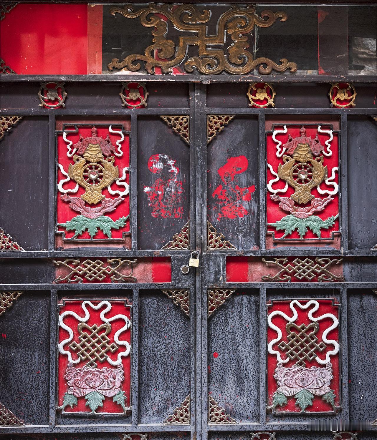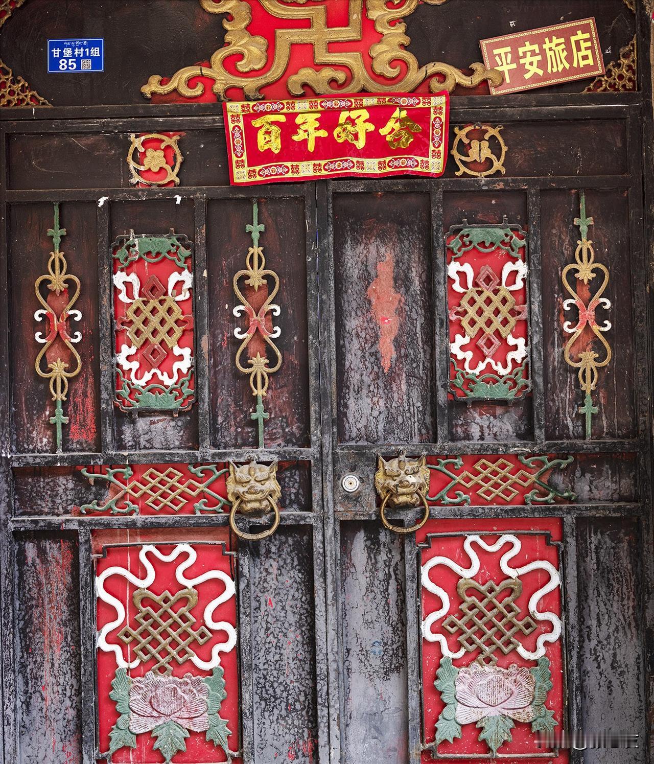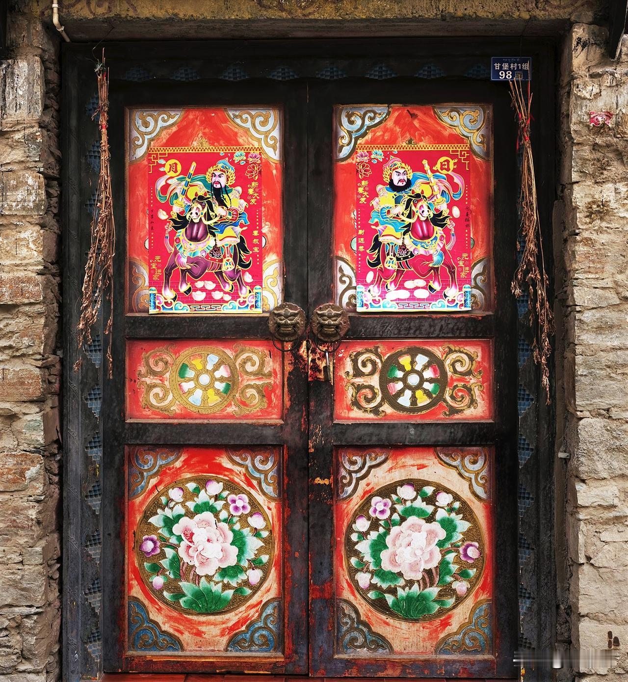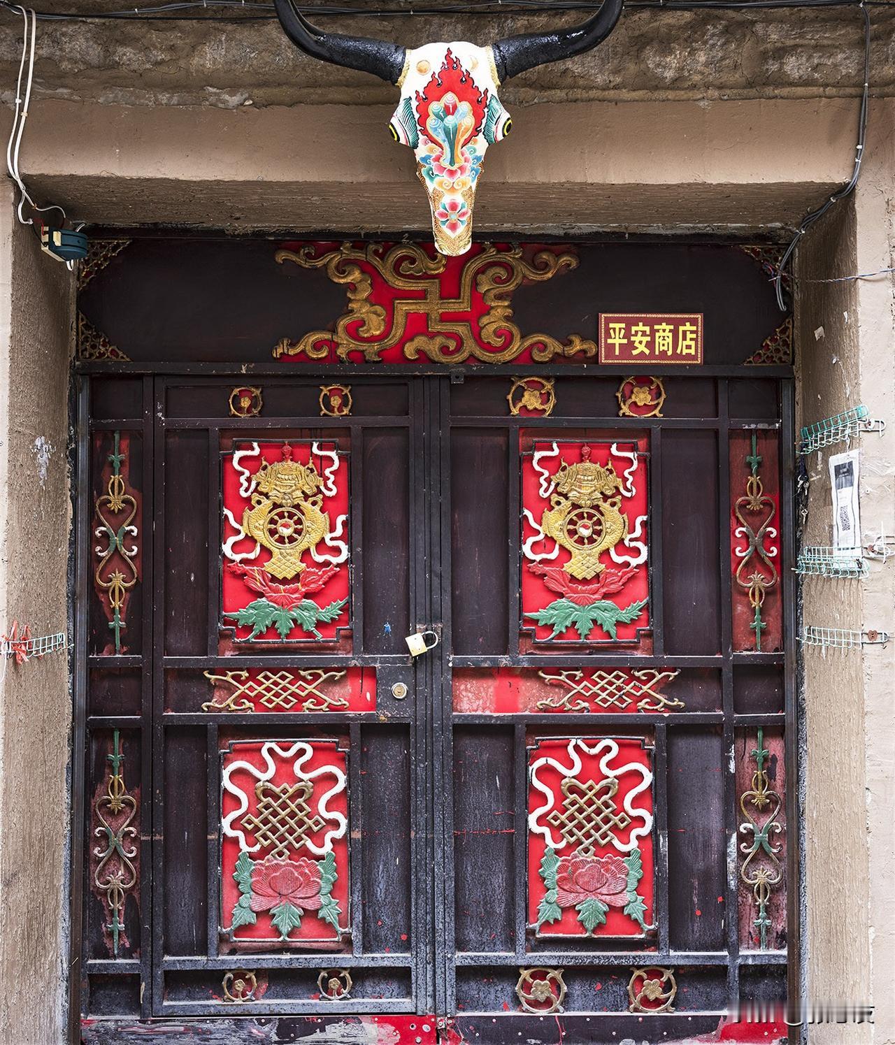 藏寨门面﹕之前对藏族门面并没有多少了解,自从2021年去四川理县甘堡藏族后,仔细观察他们的门面蛮有意思,每家各不相同,但他们的门面有着如下基本特征﹕ 藏式门一般由门框、门槛、门脸、门楣、门壁等组成。门的设计不仅注重实用性,还强调装饰性,通常门楣上有彩绘的斗栱和烫金的符咒,具有浓厚的宗教和文化象征意义。 传统藏式民居多用木材制作门扇,涂以朱红或黑色,门楣和斗栱则使用蓝、红、绿等色彩进行彩绘,显得色彩鲜艳且具有视觉冲击力。 门楣上可能放置白神石、牦牛头、羊头等具有宗教象征意义的物件,这些物品与藏族人的放牧生活和宗教禁忌有关,不喜杀生,体现了对生命的尊重。这些习俗都体现了藏族文化深厚的宗教和民俗传统。体现了藏族人民对手工艺品的热爱,还反映了他们丰富的文化内涵和独特的审美情趣。