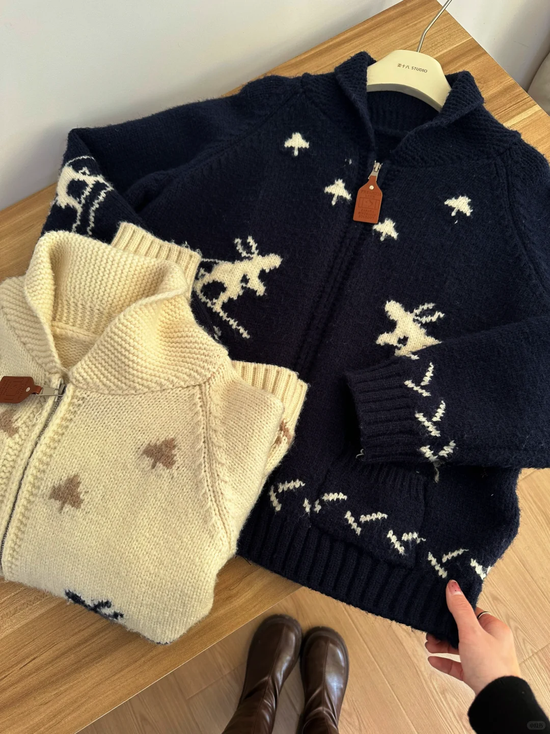 一件戳🀄️心巴的麋鹿翻领毛衣🎄