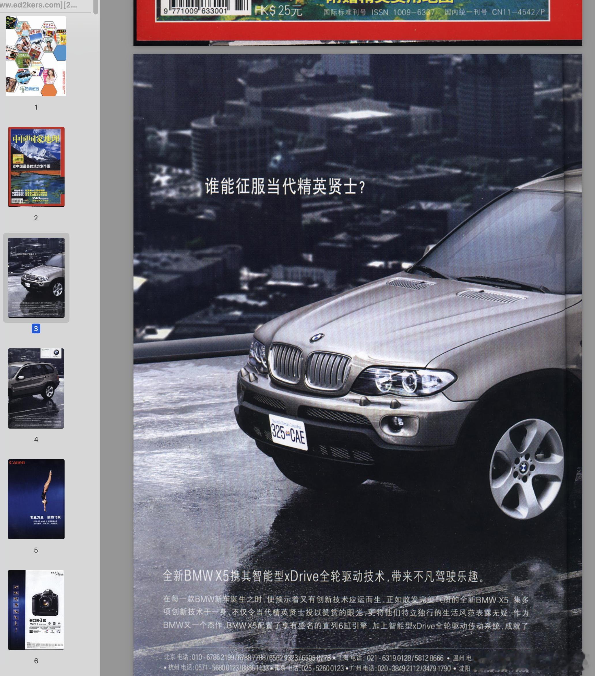 谁能懂,倒腾电脑里的旧资料,2004年的国家地理杂志,开篇是别摸我BMW的X5,