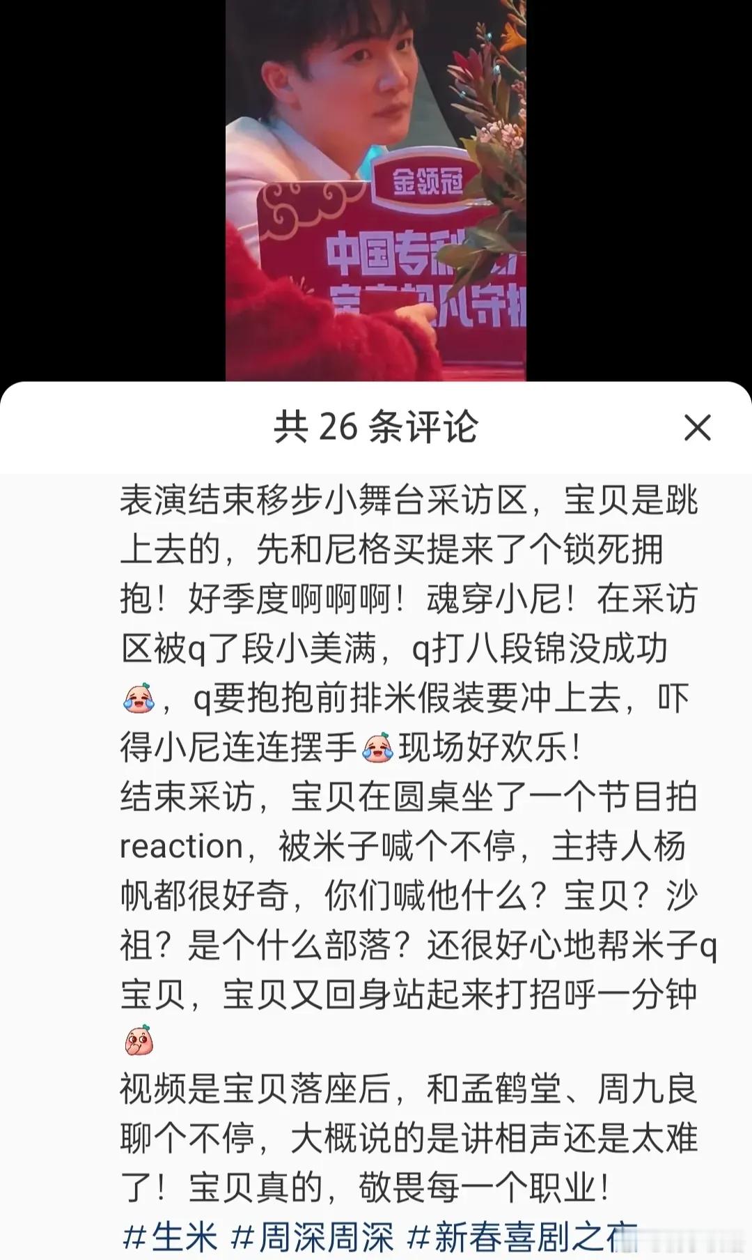 2024年度封面之星top10 周深昨天录制《新春喜剧之夜》的路透!和孟鹤堂周九良表演了相声,中间还有魔术,唱歌,唱戏!曲苑杂坛呀!这个节目在大年初一播出,这个时间段大家都有空看电视了,好期待呀!