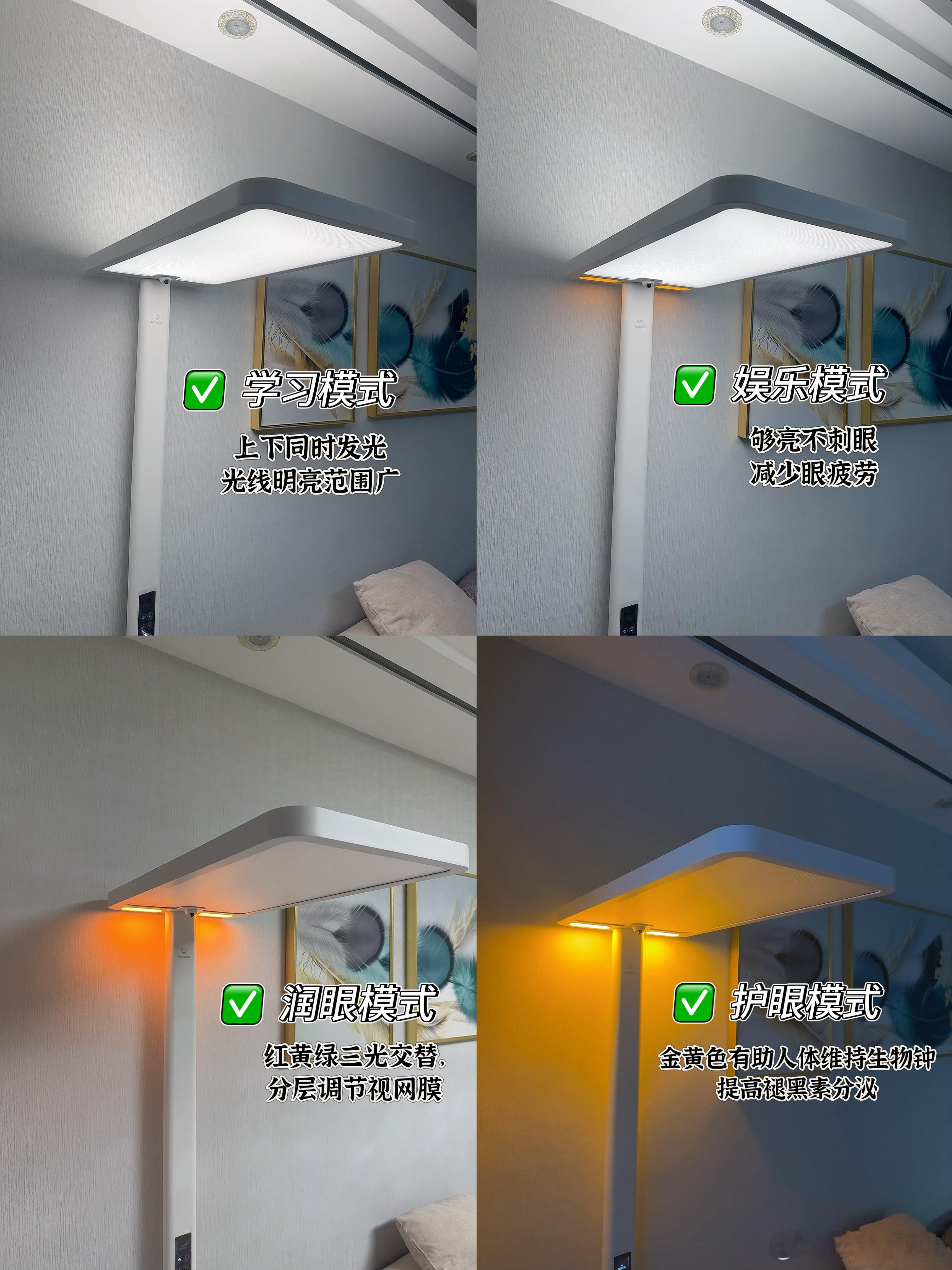 而且啊,和普通只有单一照明功能的大路灯比起来,它的养眼功能简直就像是个私人眼科医生一样,无论是休息还是睡眠,都能时刻守护着他俩的眼睛。休息的时候,还能打开润眼光谱,红黄绿三光轮流上阵,给眼睛做个小按摩,缓解一下长时间用眼的疲惫感。我们大人觉得眼睛干涩的时候,也能用一用,特别实用![666]