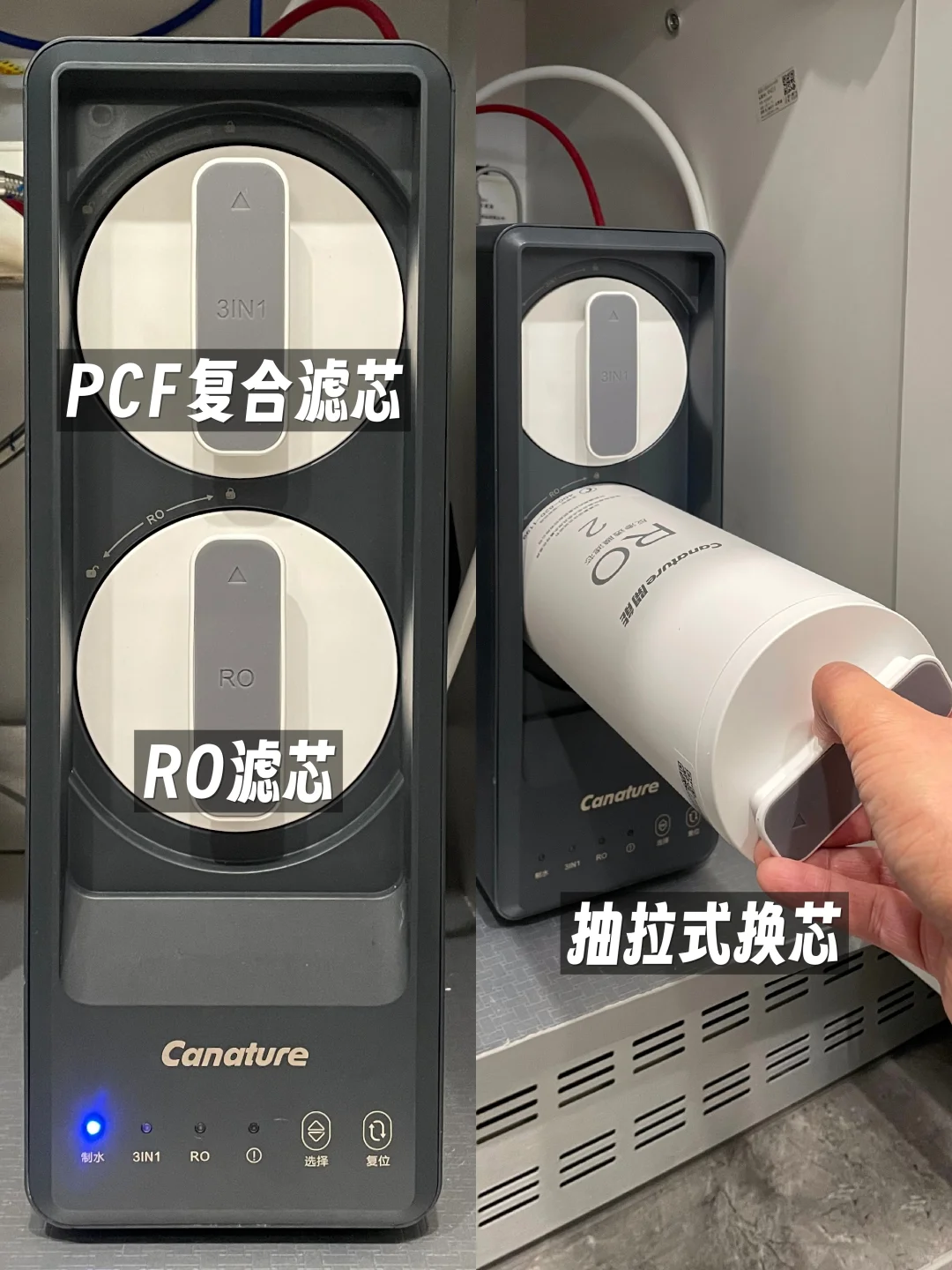 ☑️侧抽式滤芯,一旋一抽,自助换芯很方便。总结来说就是该省省,该花花,水质安全要有保障,维护费用也要控制~