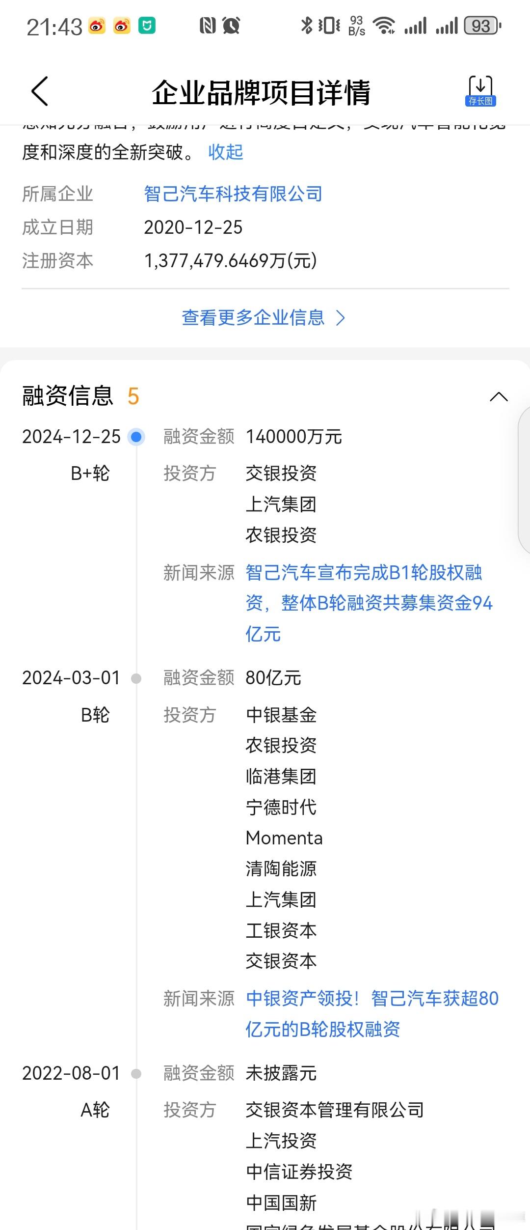 紧接着就是12月25号圣诞节,智己又在B+轮,融了14亿。