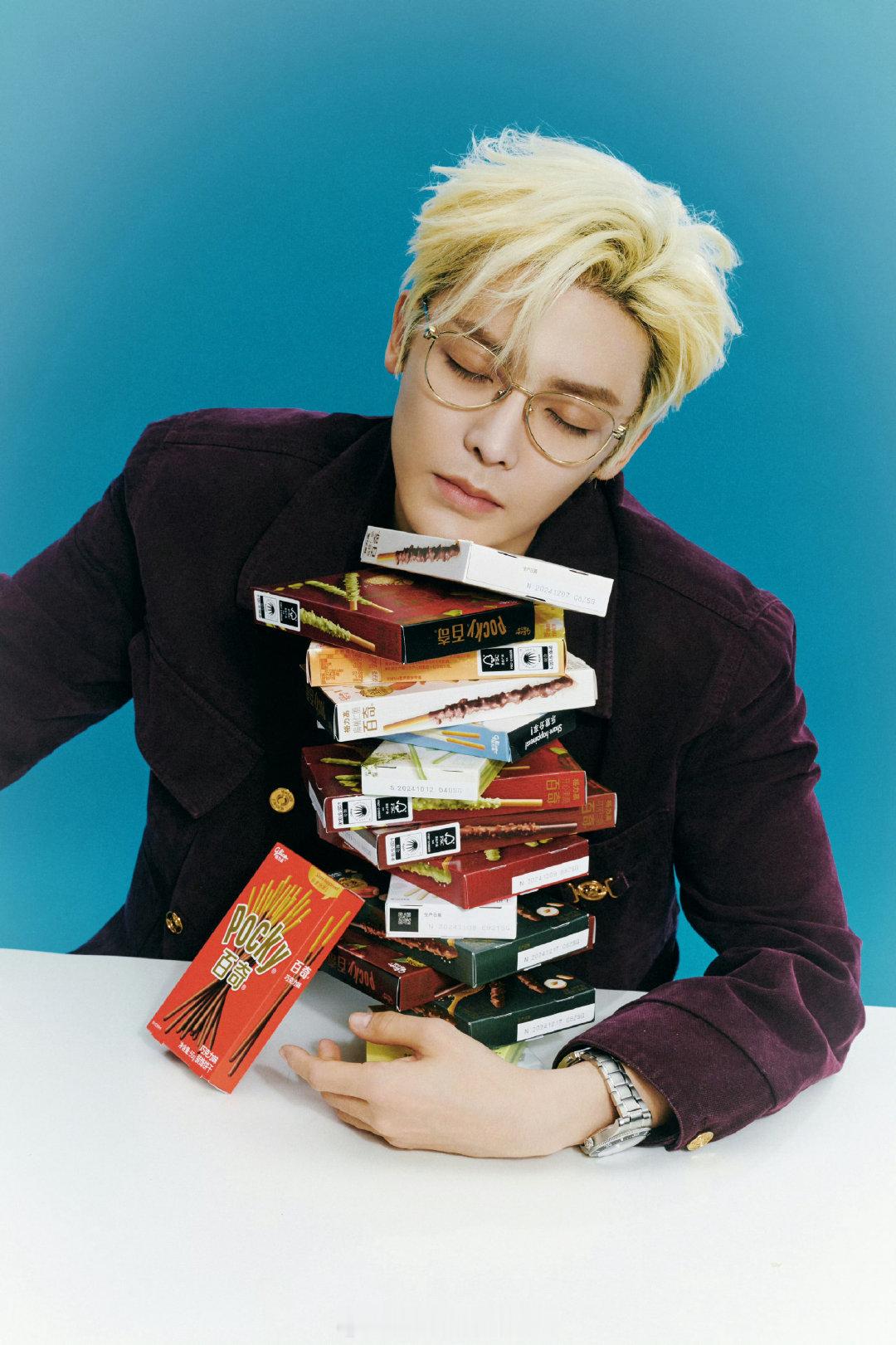 侯明昊的金发造型搭配金丝眼镜,简直太绝了,散发着无与伦比的魅力,堪称 daddy