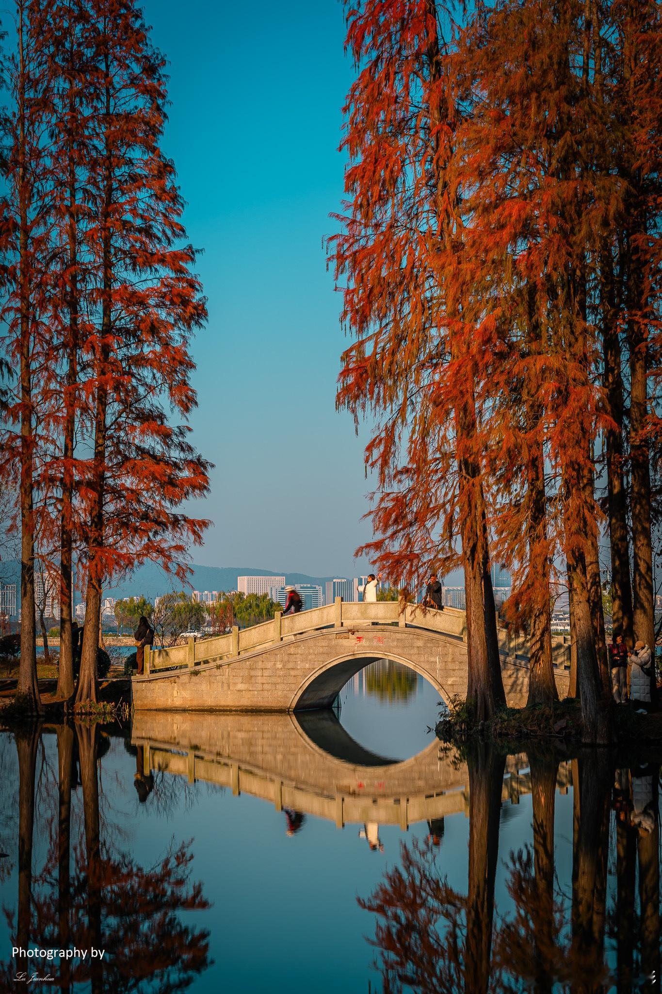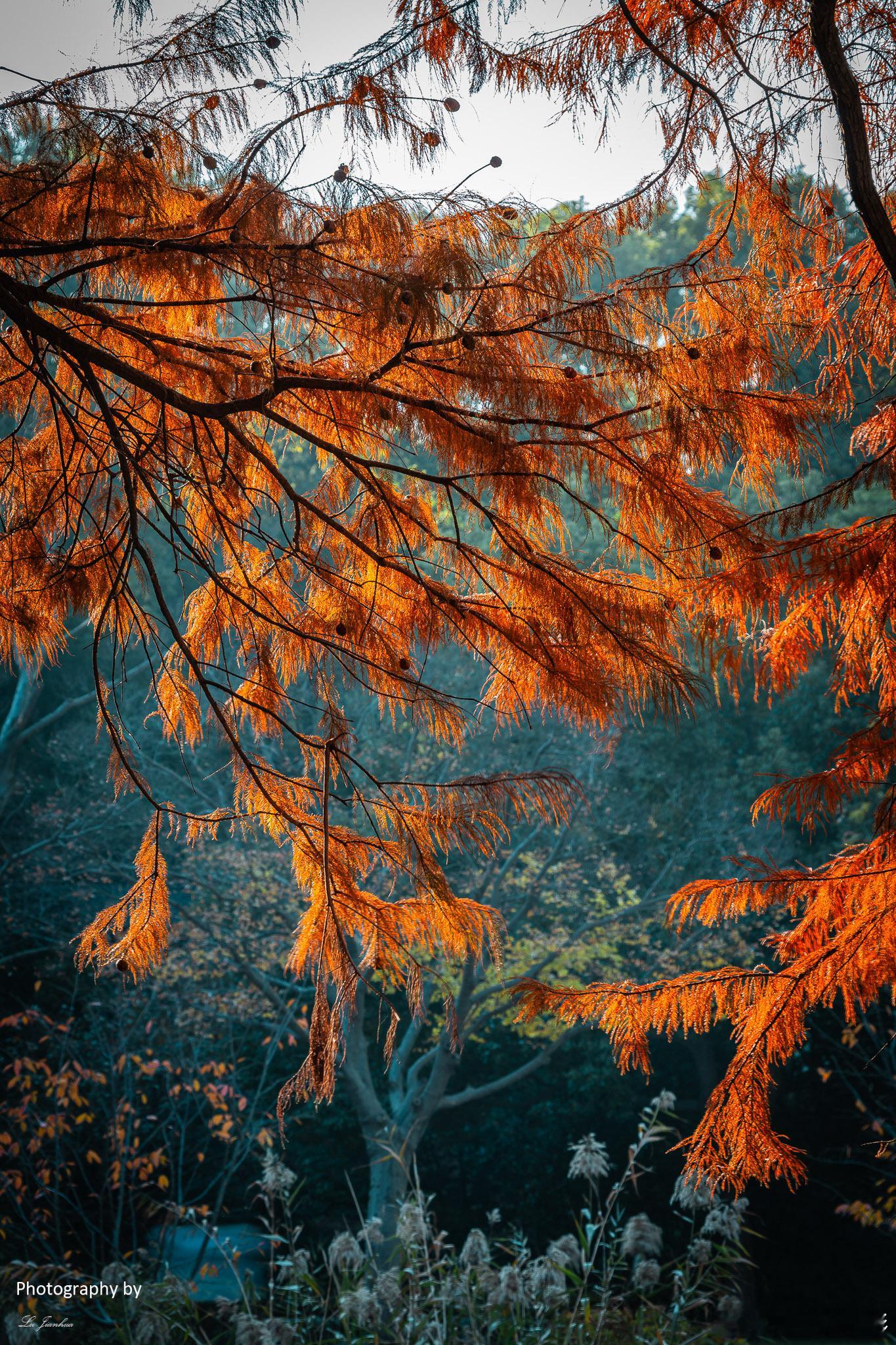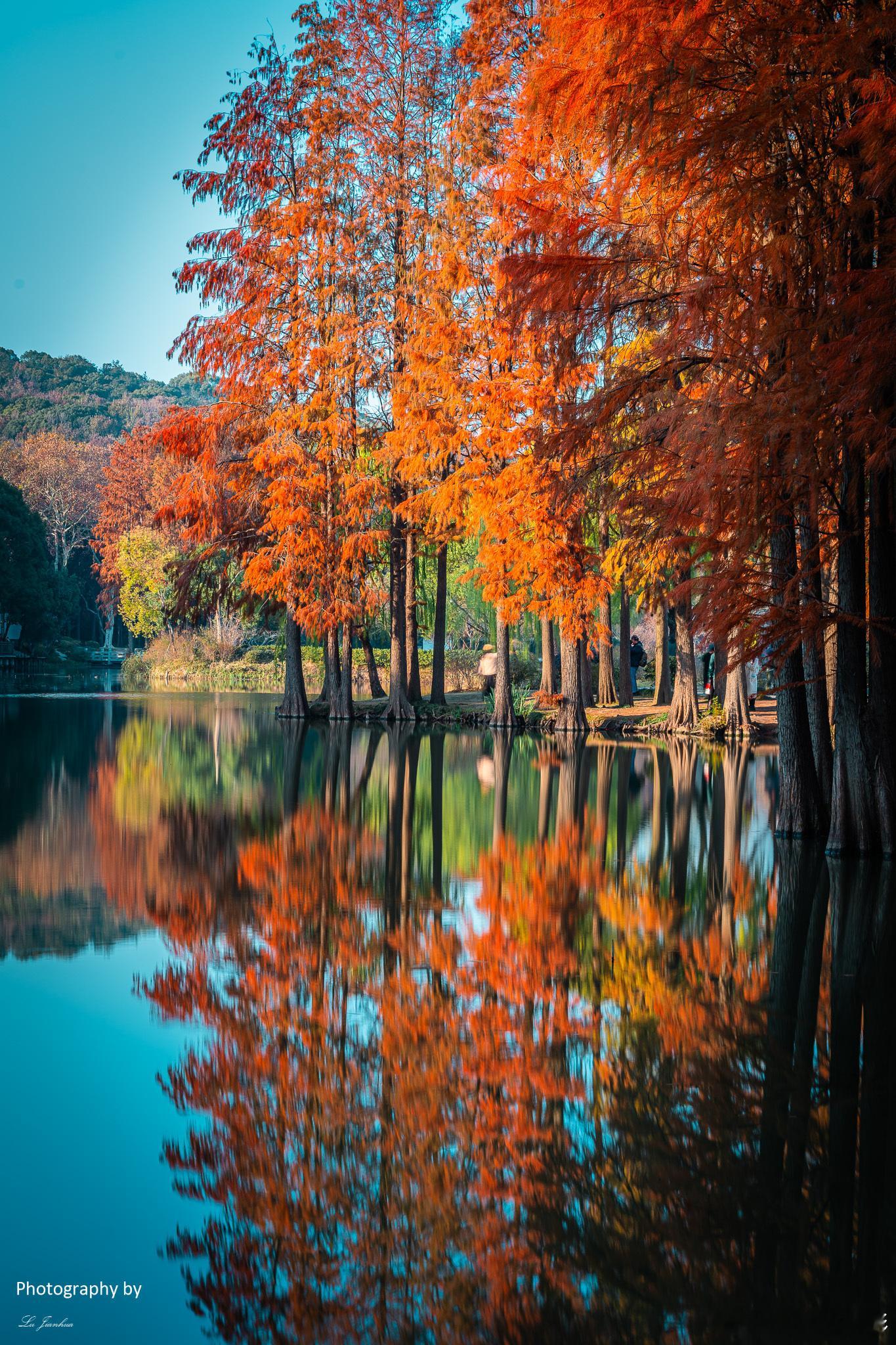 无锡太湖鼋头渚充山隐秀水景苑,冬日红杉林。晚安。