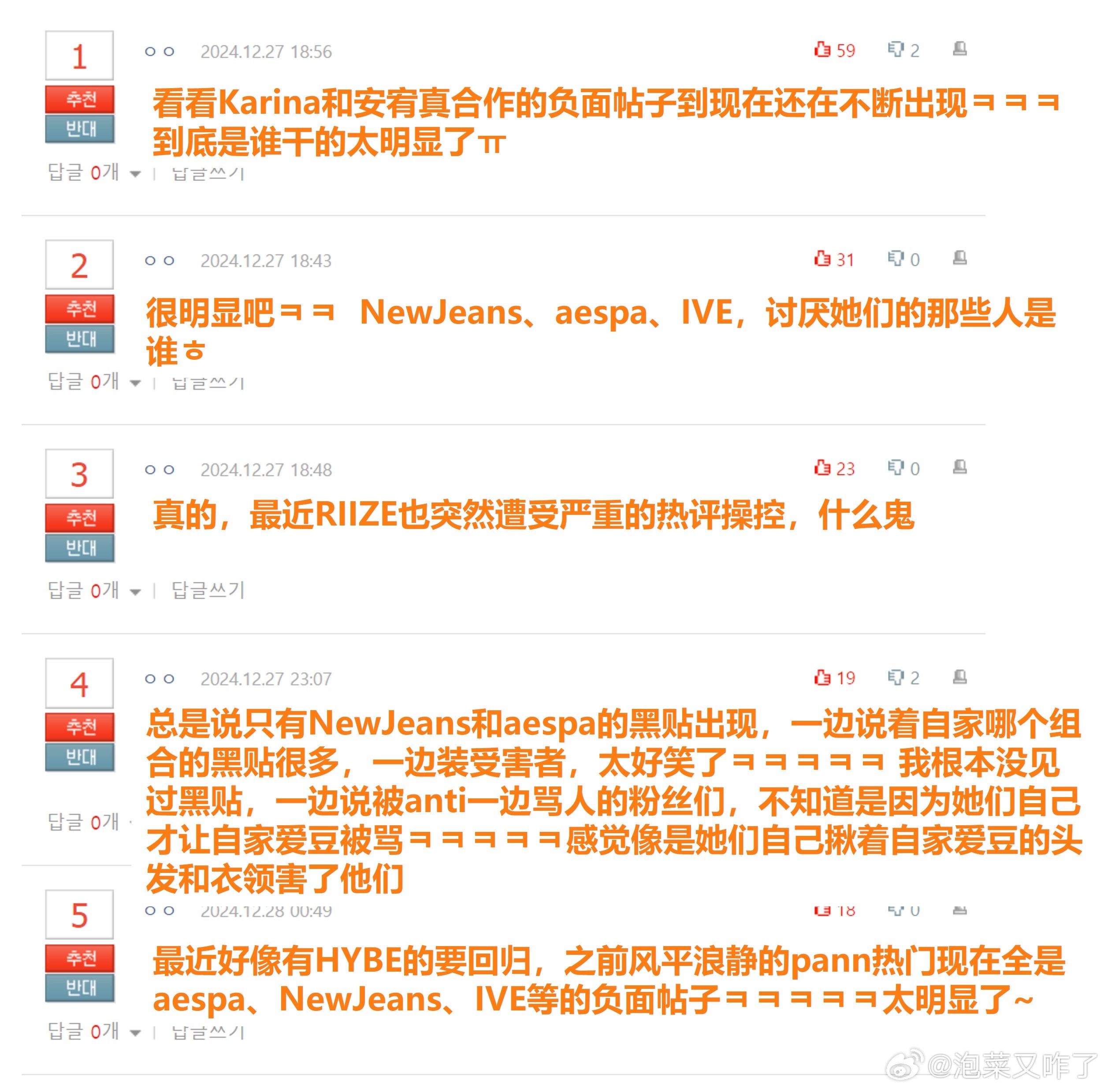 原楼主发现NewJeans Karina负面贴赞的数量一致,感觉又是HYBE反向营销手段