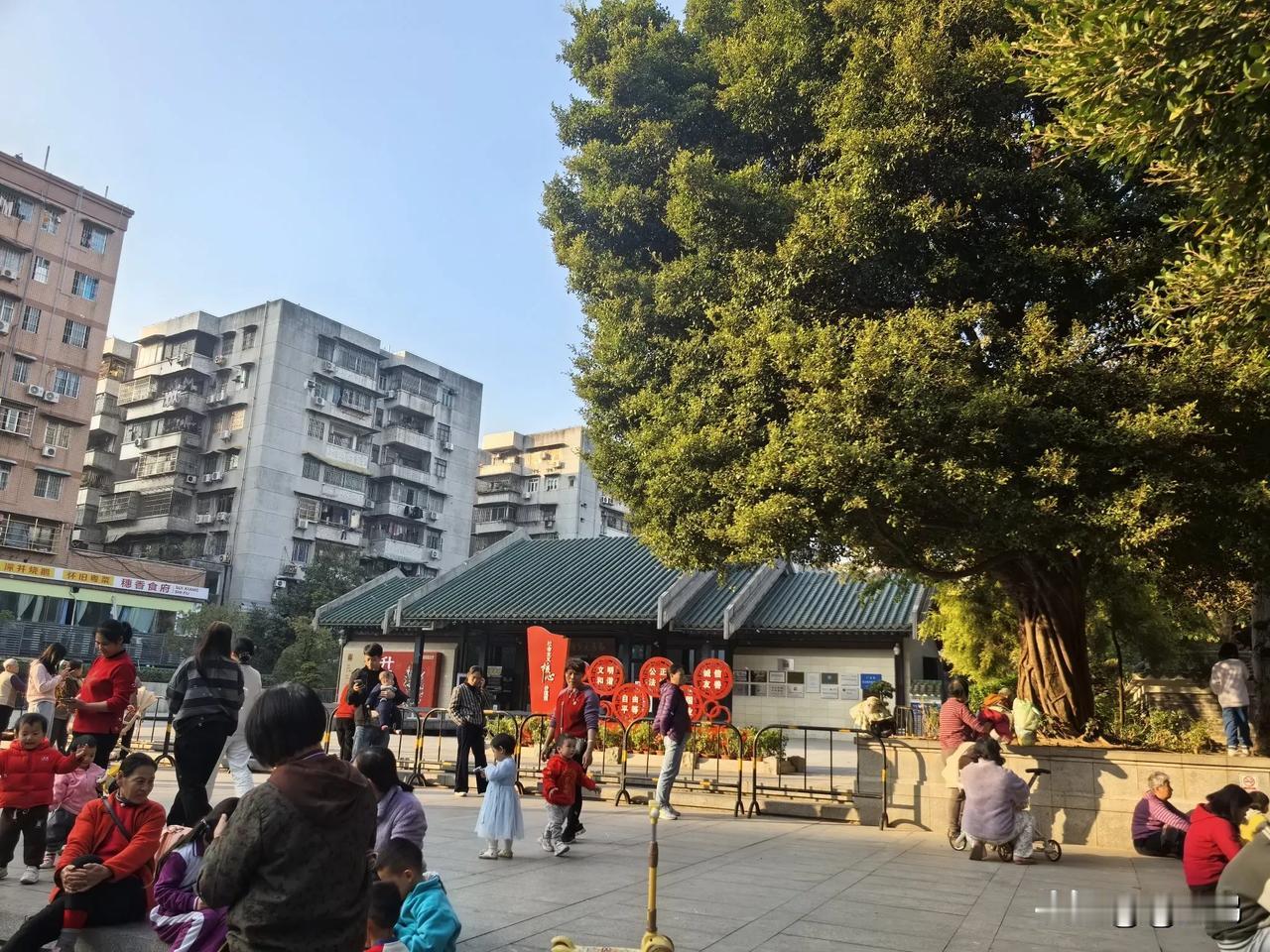 静静诉说着老广州的故事,沉淀着悠悠岁月。 处处弥漫着庄重宁静的气息。 每至下午四点多, 虽说古观已收馆,但门口广场便热闹起来。 孩子们欢呼雀跃地下课归来嬉笑玩耍, 老人们不紧不慢地踱步前来唠唠家常, 大家聚在这儿享受惬意时光, 为这一带增添了别样的生活韵味。