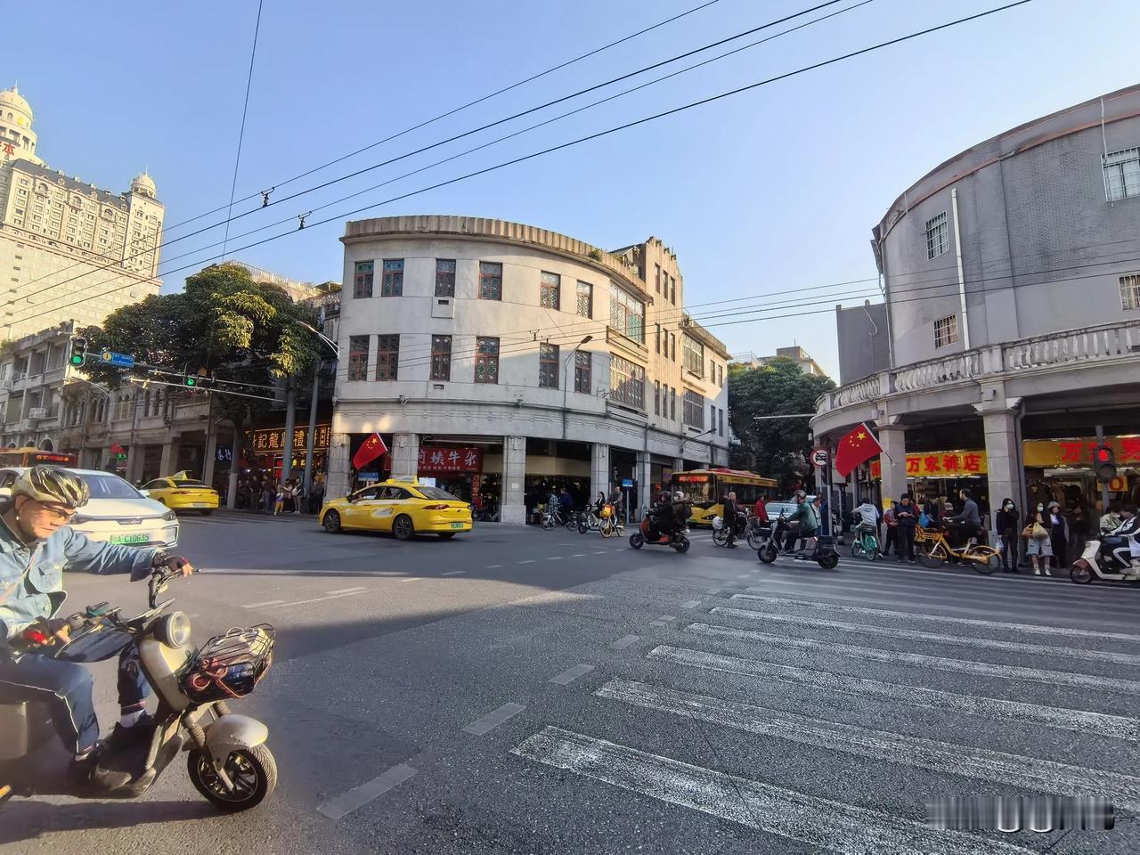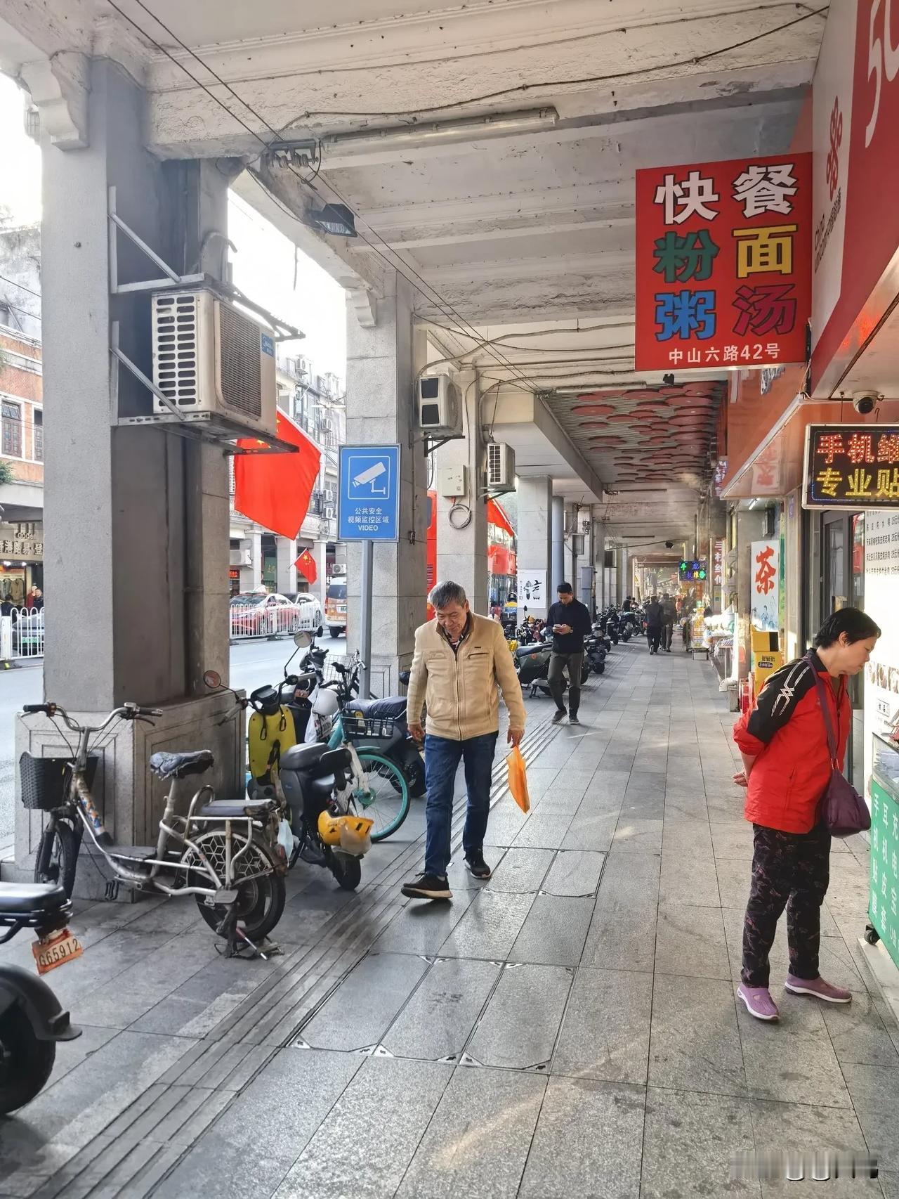中山六路骑楼老街的情怀 【二】 中山六路,留存着广州的旧时光。古旧骑楼相互依偎,街道不宽,生活的气息却很浓。石板路被岁月磨得光滑,行人来来往往,有悠闲的,也有匆忙的。街边小店密密麻麻,杂货铺啥都有,小吃摊热气腾腾。 抬头望去,骑楼老街和马路上方的电线杆上,电线纵横交错,仿若岁月镌刻下的斑驳脉络,无序却又满是故事。这些电线在老街的天空中蔓延,如同一张无形的网,网住了往昔的回忆,也连接着当下的生活。 两旁的老建筑,带着古老的韵味,又有现代的影子,历史和现代交织着,洋溢着浓郁生活情韵。马路上车来车往,喇叭声、引擎声不断。 漫步其间,过往岁月与当下生活的痕迹相互交融,让人倍感温暖亲切,由衷喜爱这老街独有的温馨氛围和醇厚韵味。 图片素材:手机自行随拍 拍摄时间:2025 / 1 / 2