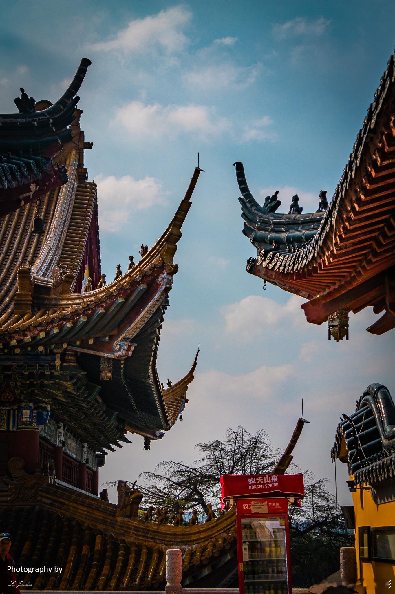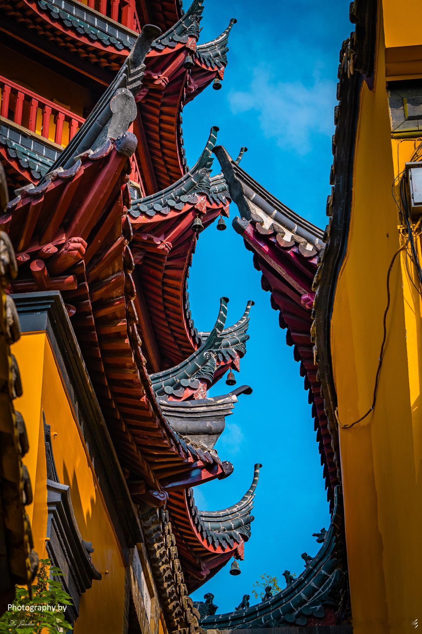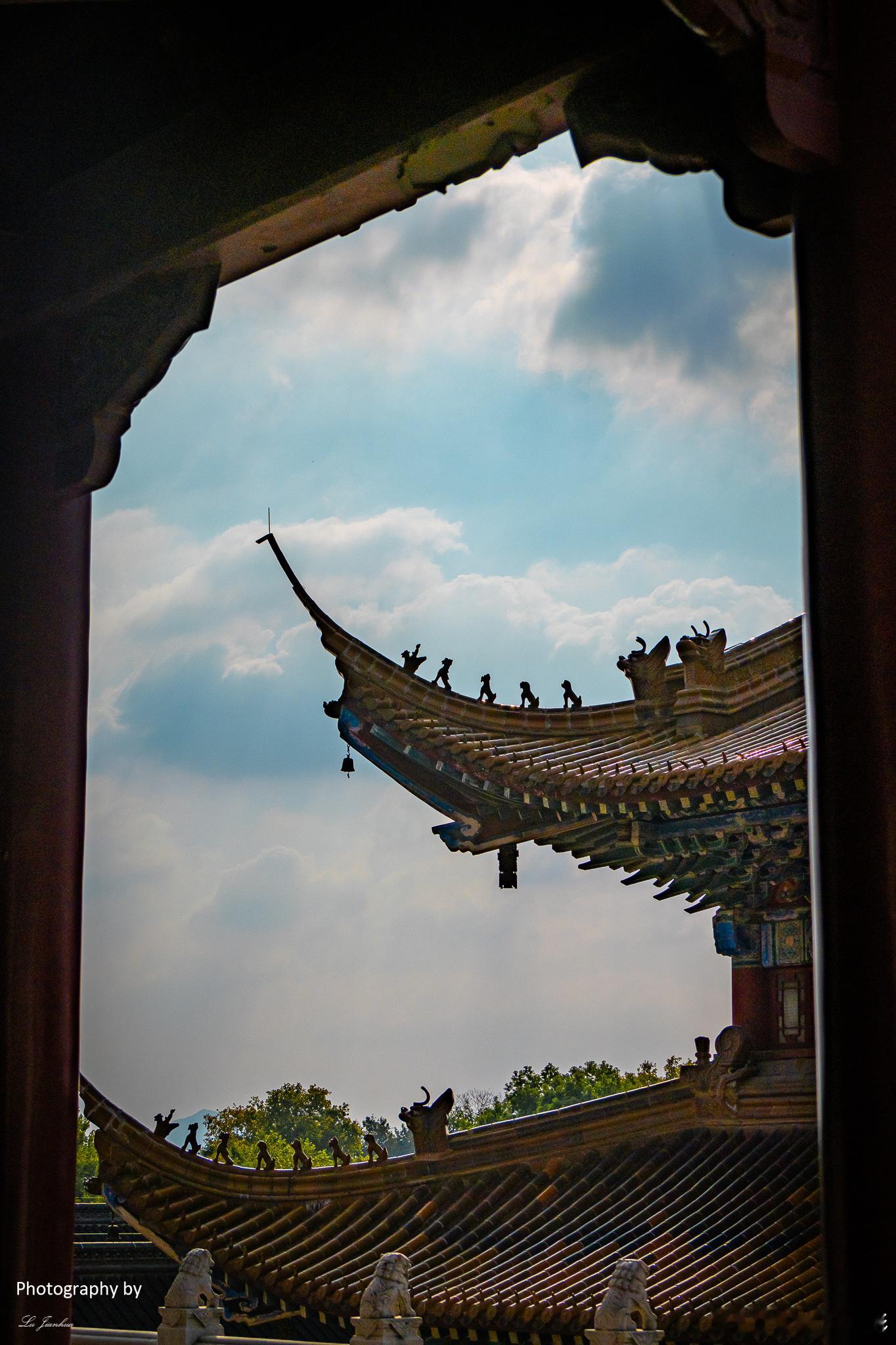 镇江金山寺,飞檐斗拱处,雕梁画栋间。晚安。