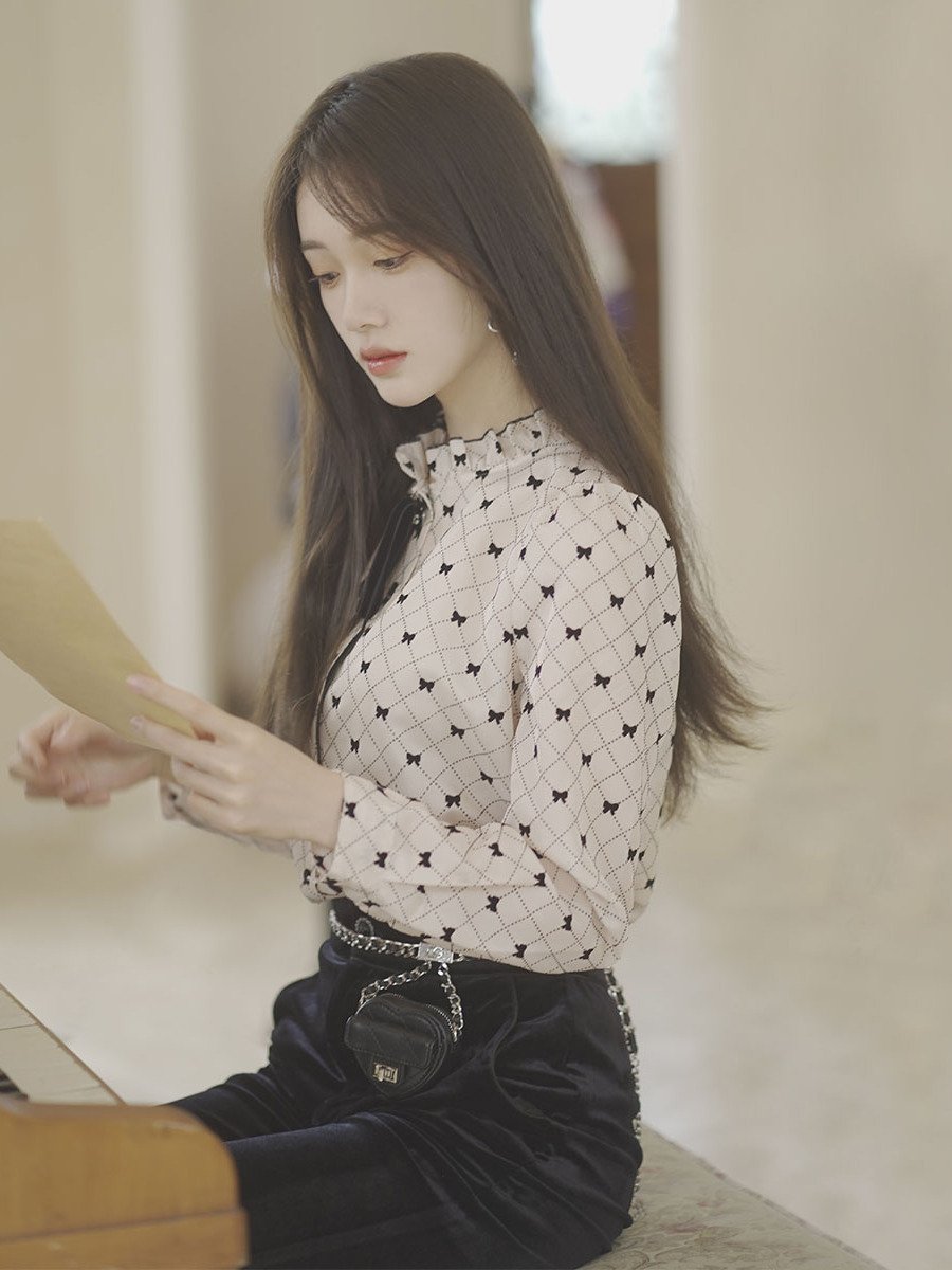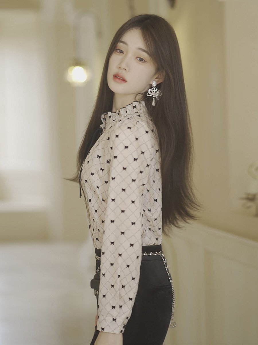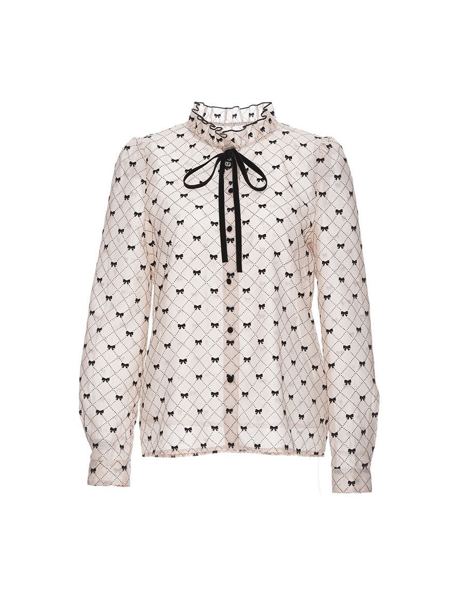 哥文花园蝴蝶结小众复古杏色衬衫女上衣