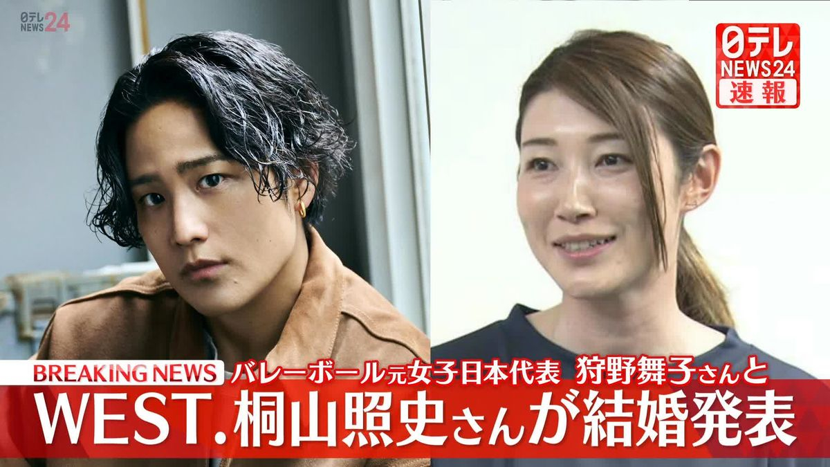 “WEST.” 组合的桐山照史(35 岁)宣布与原日本女子排球国家队队员狩野舞子(36 岁)结婚。其所属的 START O 娱乐公司传达了这一消息。这也是 7 人组合 “WEST.” 成员首次发布结婚喜讯。