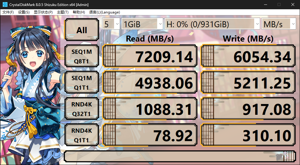 关于这台主机的性能我就不多加赘述了,RTX 5070应对《街霸6》自然是得心应手,但是游戏流畅的原因还在于游戏的加载吞吐性能,佰维Nv 7200 1T实测顺序读取速度7209MB/s,写入6000MB/s,符合官方描述,4K浅层读写表现也不错。
