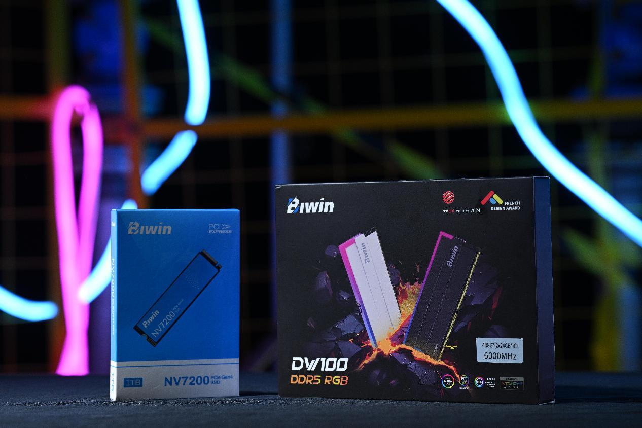 存储方面由佰维(Biwin)提供,佰维存储是国内存储行业的头部企业,可不是什么杂牌,全球消费级SSD市场的重要竞争者,技术覆盖芯片到封测全链条,2024年跻身全球SSD出货量TOP10(第五名),尤其在AI端侧和企业级存储领域快速崛起。本次佰维提供的固态为Nv 7200 1T固态和DW 100 6000 24GBx2内存,本次要定制的产品也包括了这套内存条。