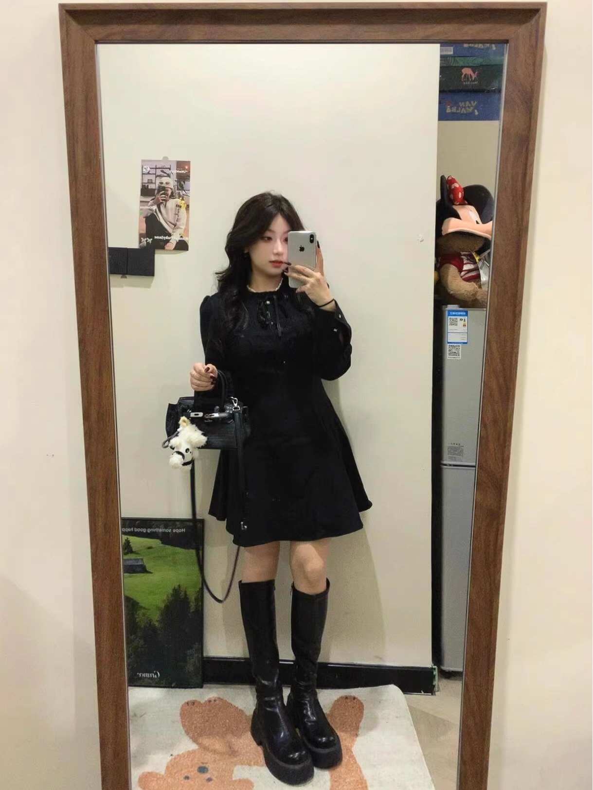 黑色战袍高级感衬衫连衣裙小个子女2025秋冬新款过年内搭打底短裙