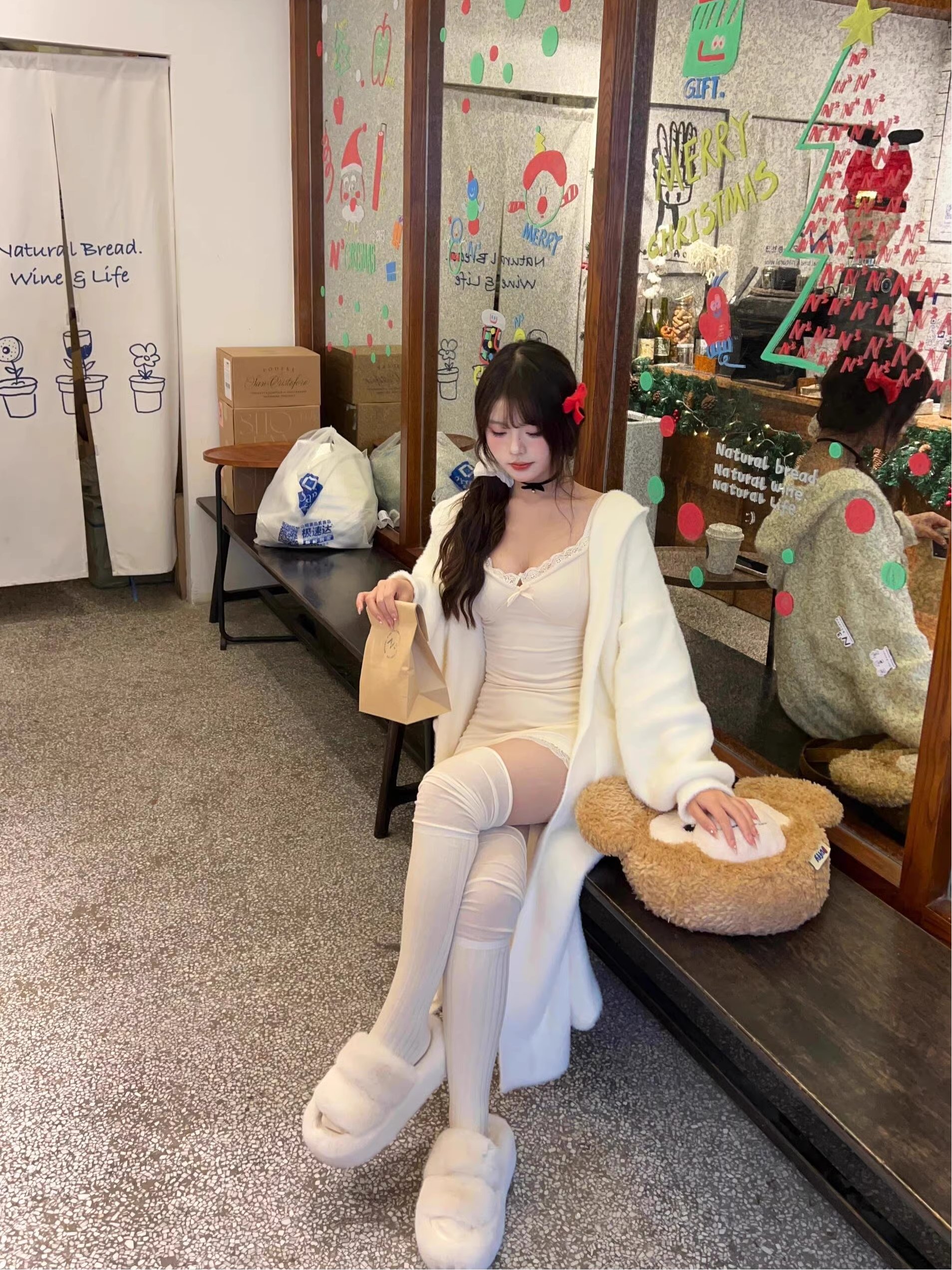 可盐可甜白色过新年套装包臀短裙
