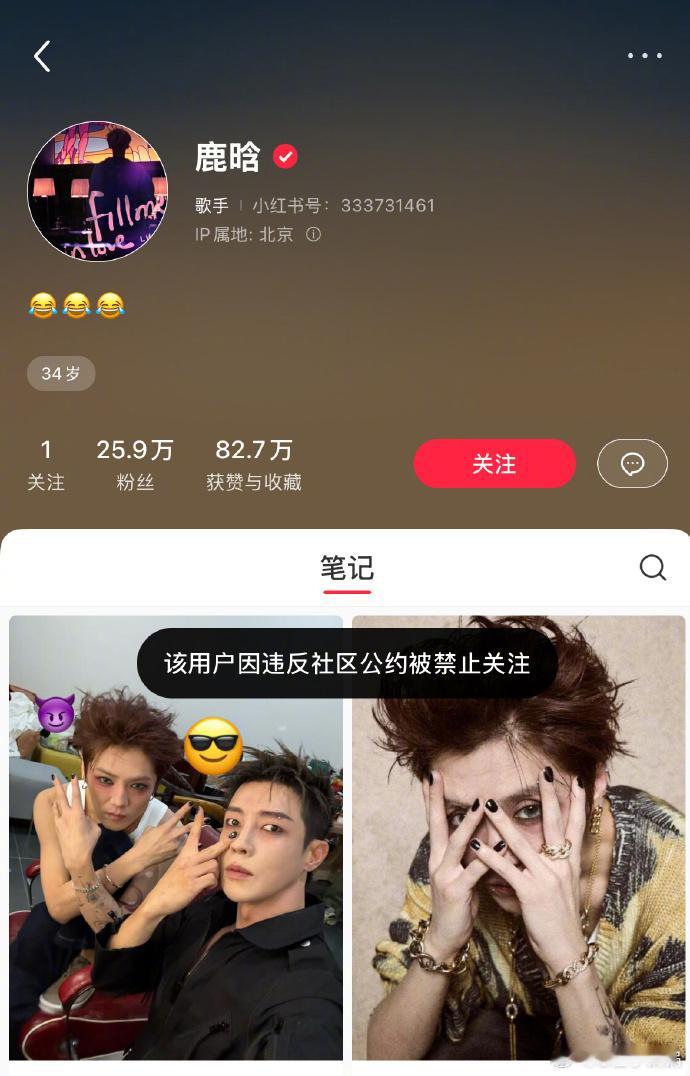 年底有什么大[吃瓜]?鹿晗怎么了全平台被禁止关注了,试了一下抖X小X薯和微博