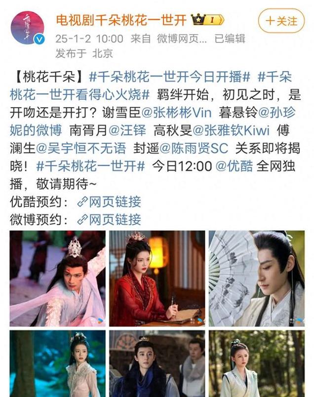 古装仙侠剧《千朵桃花一世开》官宣今日开播,张彬彬、孙珍妮大剧来袭!千朵桃花一世开看得心火烧,羁绊开始,初见之时,是开吻还