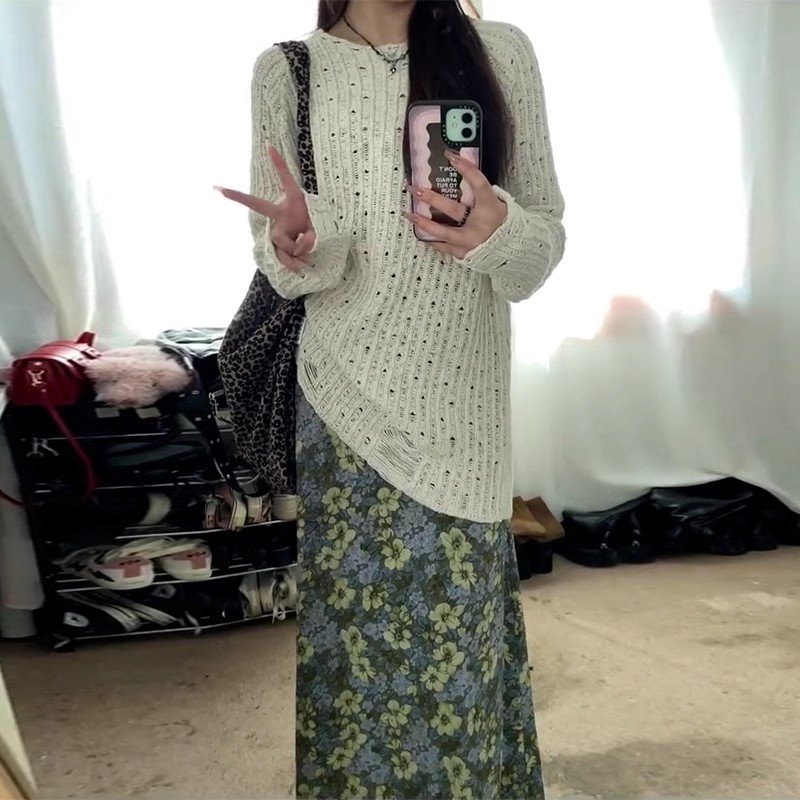 🍃 春日气息渐浓,是时候换上轻薄的春装啦!今天给大家分享一款时尚又充满女人味的搭配——镂空毛衣搭配吊带碎花裙。