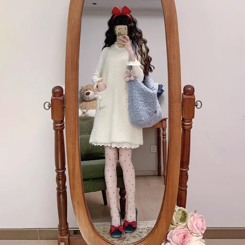 🎀 毛绒背心裙与针织上衣的梦幻搭配