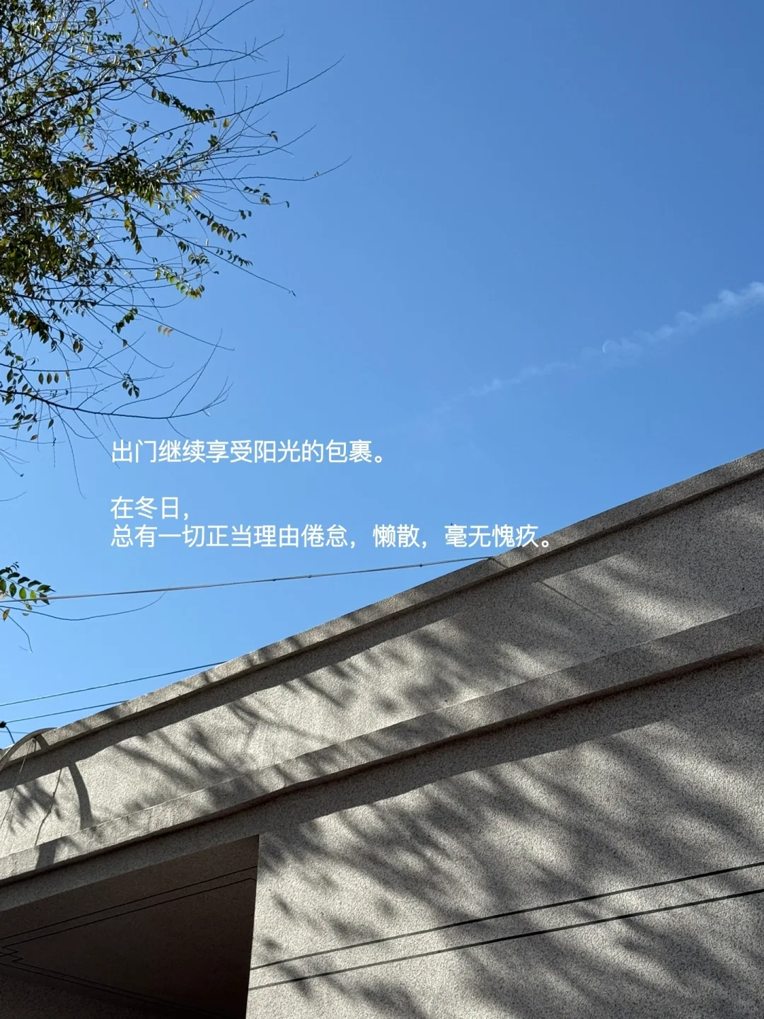 出门继续享受阳光的包裹。在冬日,总有一切正当理由倦怠,懒散,毫无愧疚。