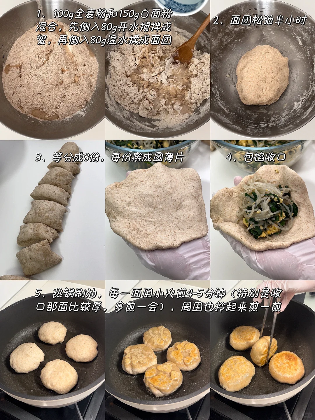 全麦粉100g、白面粉150g、开水80g、温水80g