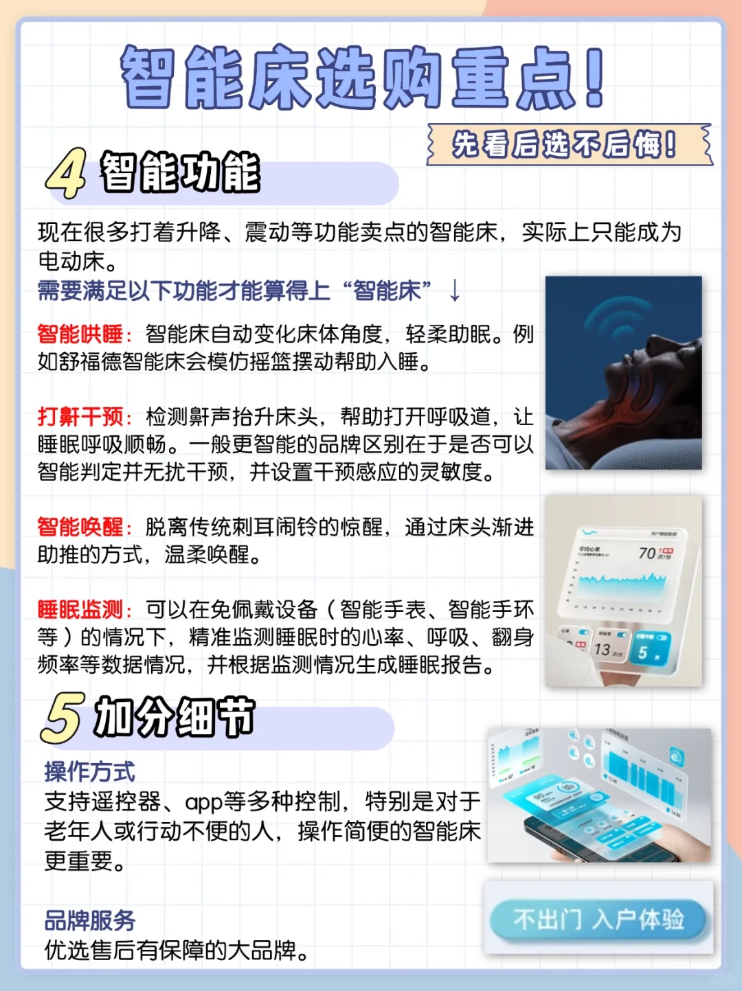 智能床选购加分细节,抓好细节,睡眠体验更佳。