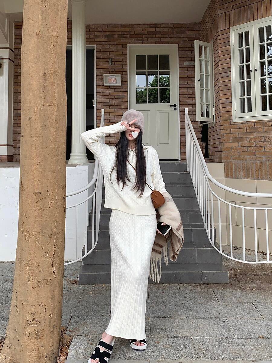 温柔纯欲显身材的新年针织连衣裙套装来啦!