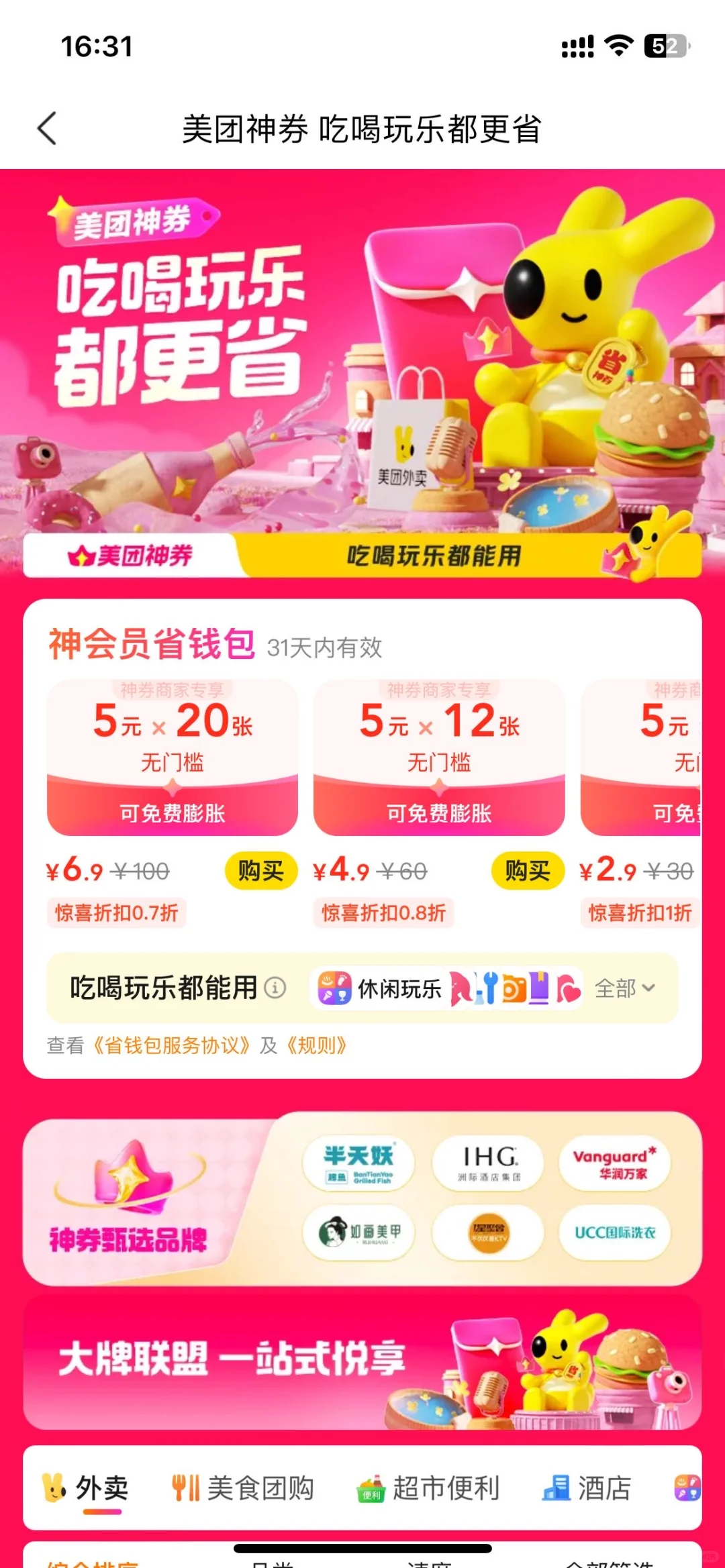 打开美团页面搜索🔍神会员111,无门槛优惠券也能领到爽,美食膨胀最高20,几块钱都不用就能喝到两大杯知名品牌饮料🥤我就是两杯饮料才用了4.9😄 ‼️敲重点:现在🈶美团神券限时特惠,2.9 元 6 张5 元无门槛券包,每张最高可以膨胀到 100 元,快去领取吧!