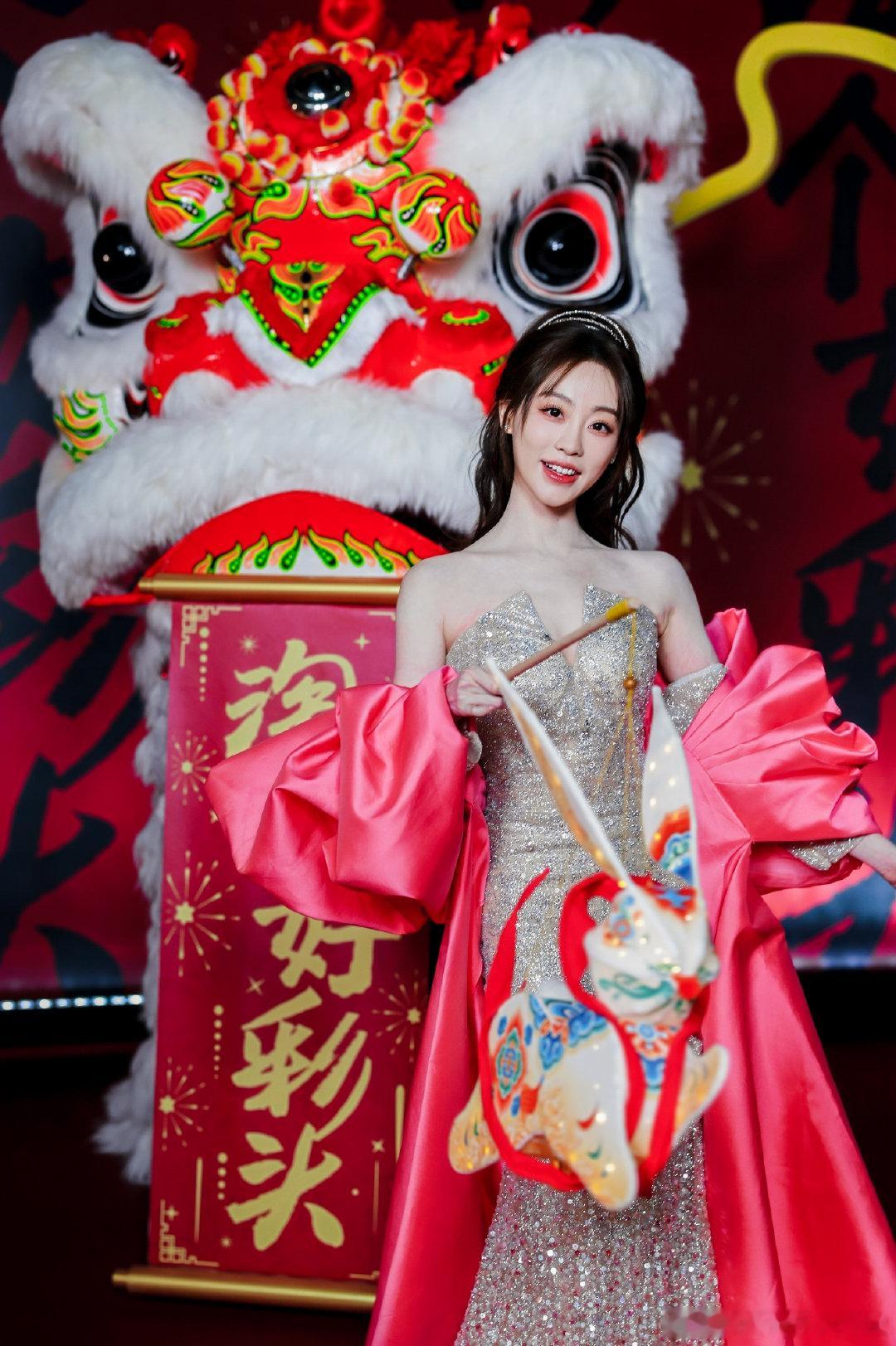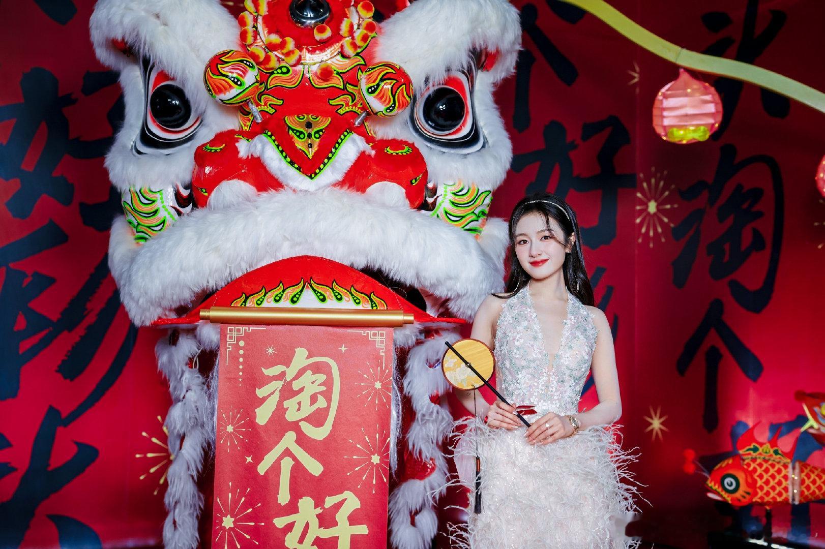 微博之夜的红毯上光芒万丈,众艺人闪亮登场,于狮子前止步,优雅面对镜头拍摄新年大片