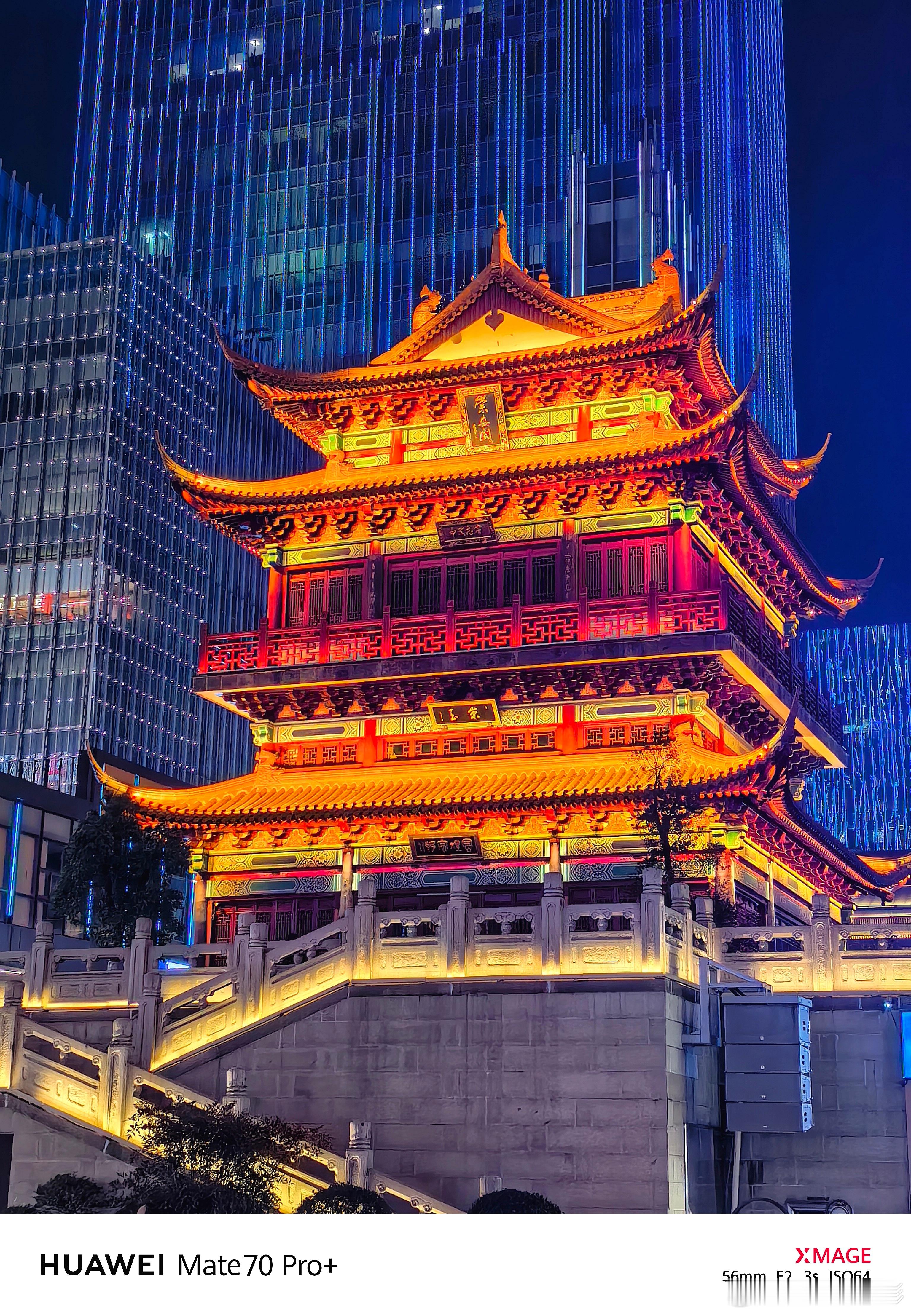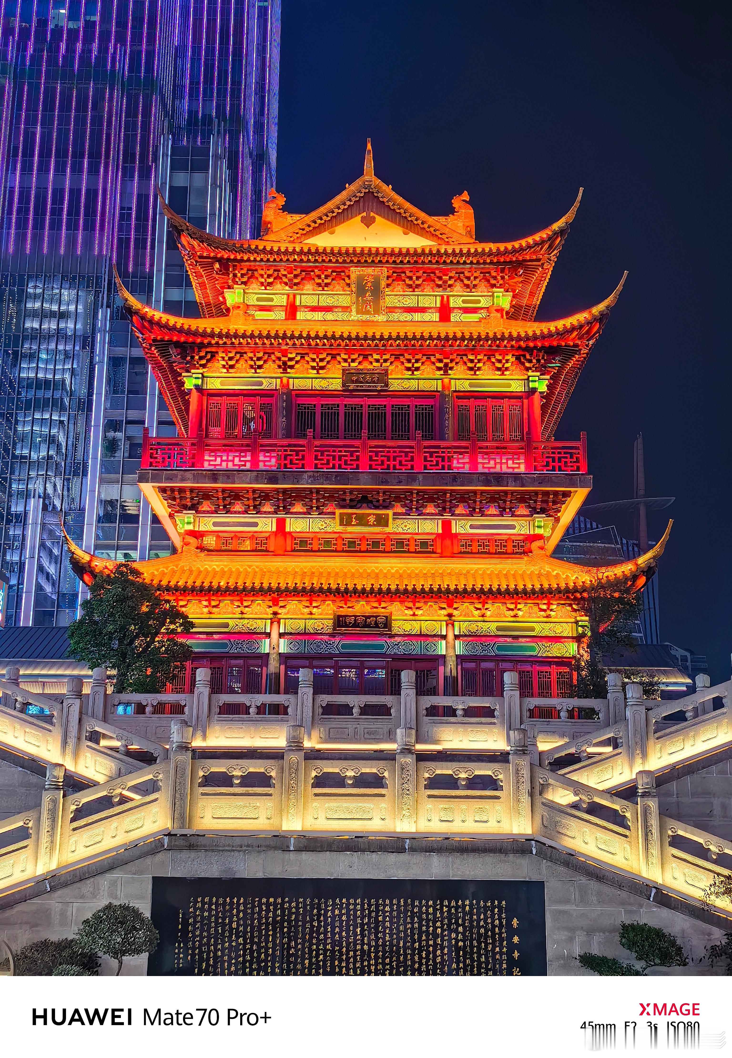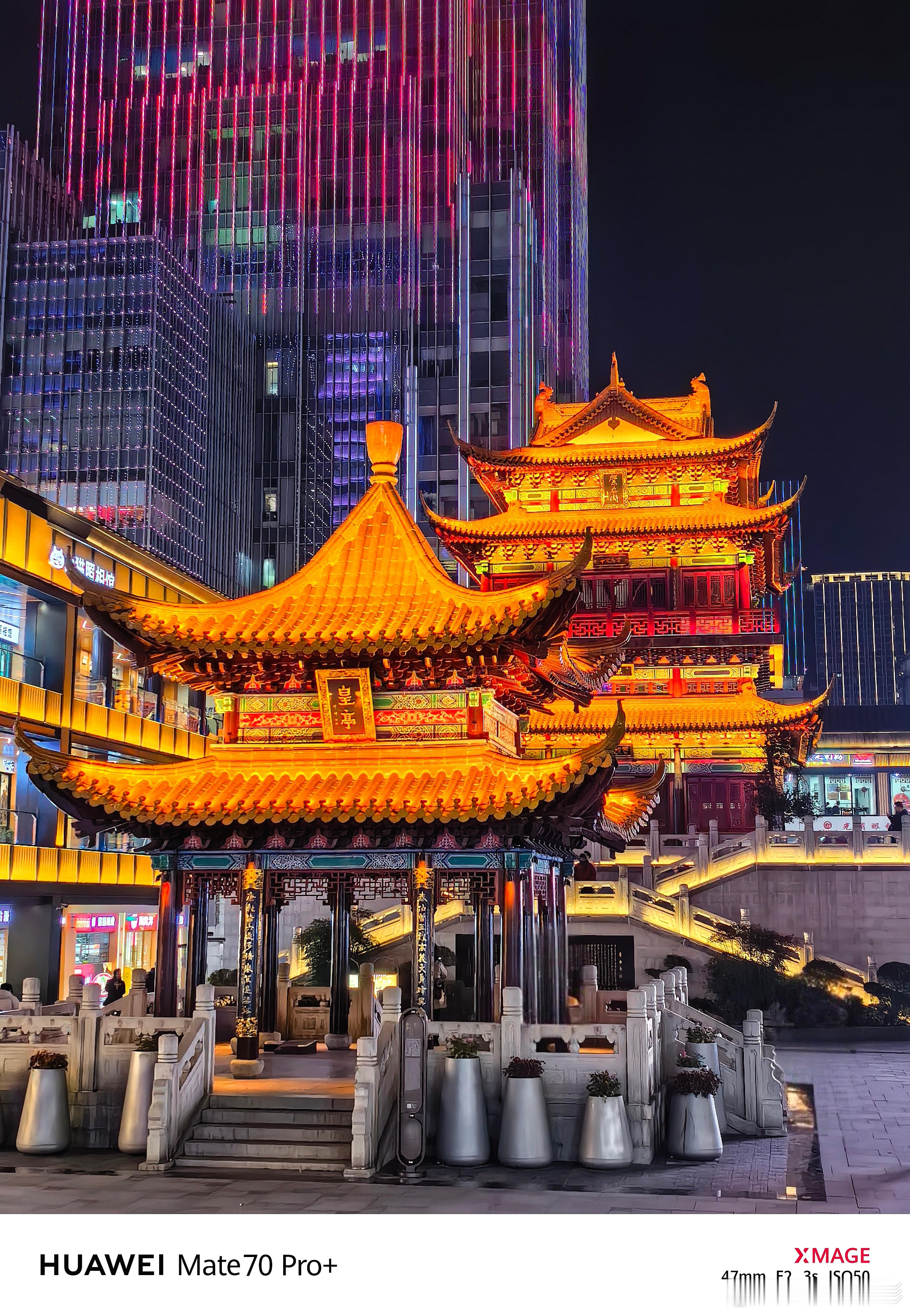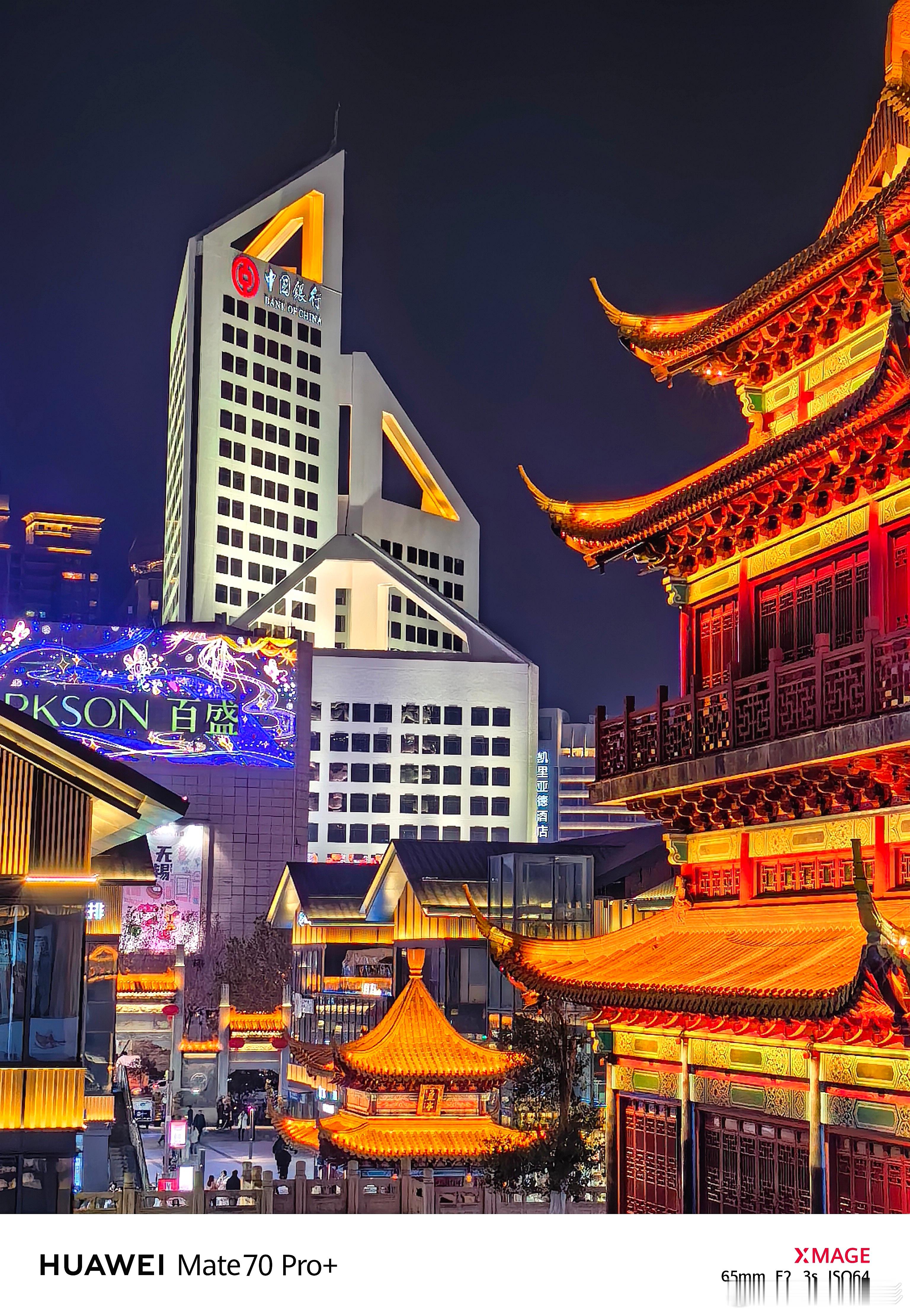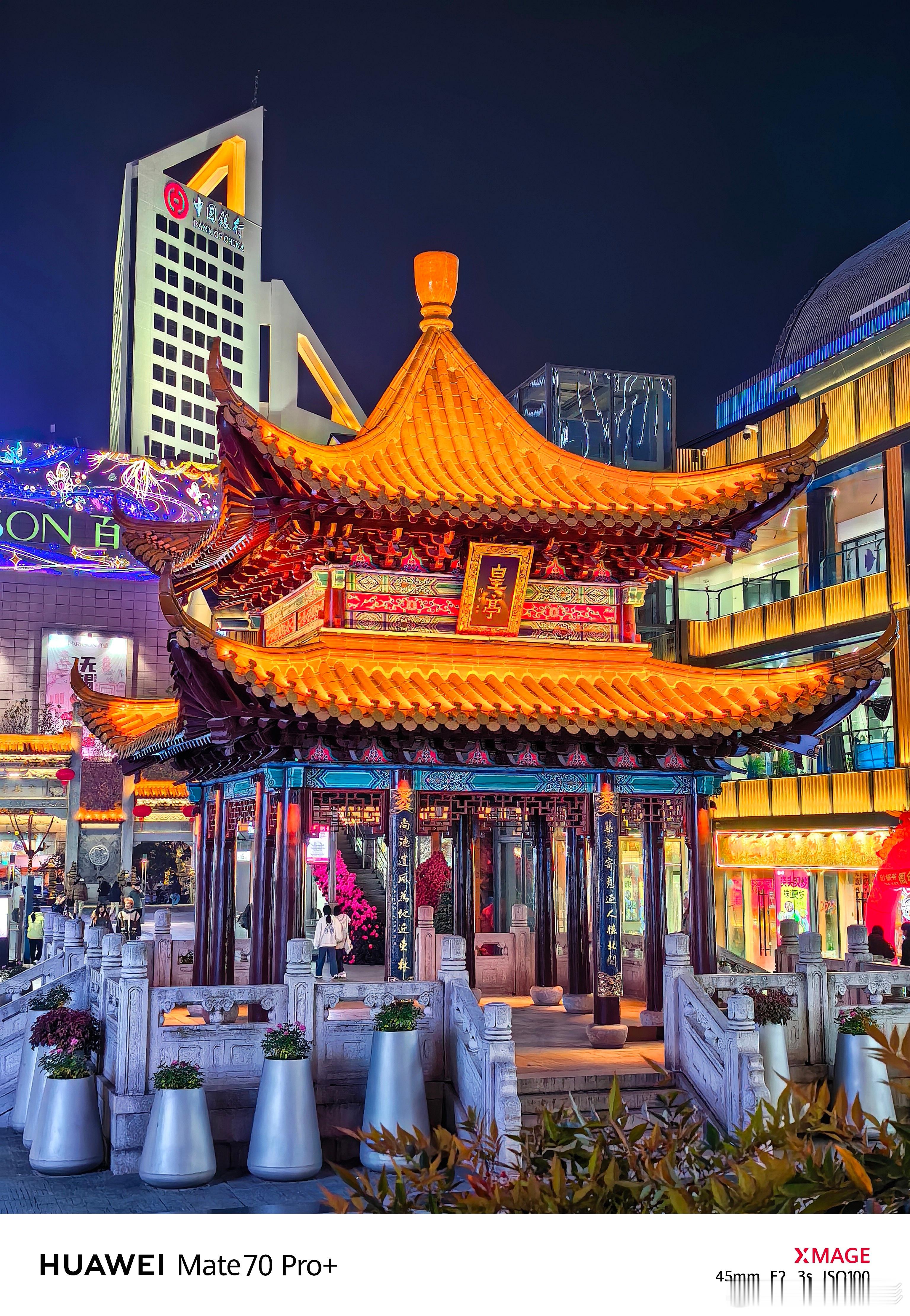 来一组手机拍摄的无锡崇安寺,夜景中的皇亭与崇安阁,熠熠生辉。