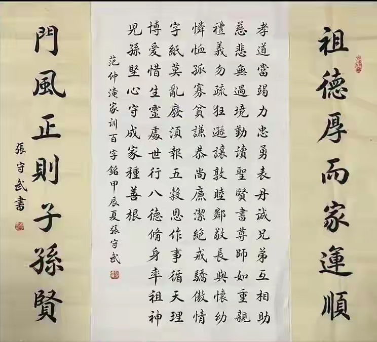 制度之外,范仲淹还亲自撰写《家训百字铭》,把儒家思想浓缩成20句箴言传承于家训中激励自己的族人。请看具体: