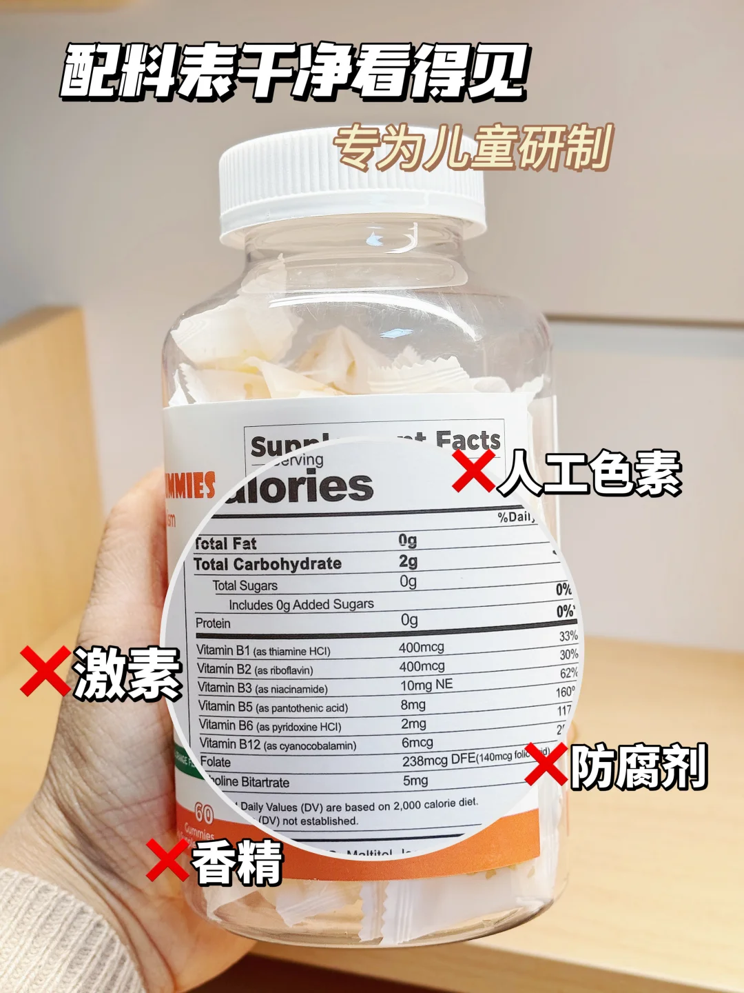 成分均衡:查看产品成分表,确保维生素 B族的种类和含量符合孩子的日常需求,避免过量摄入。