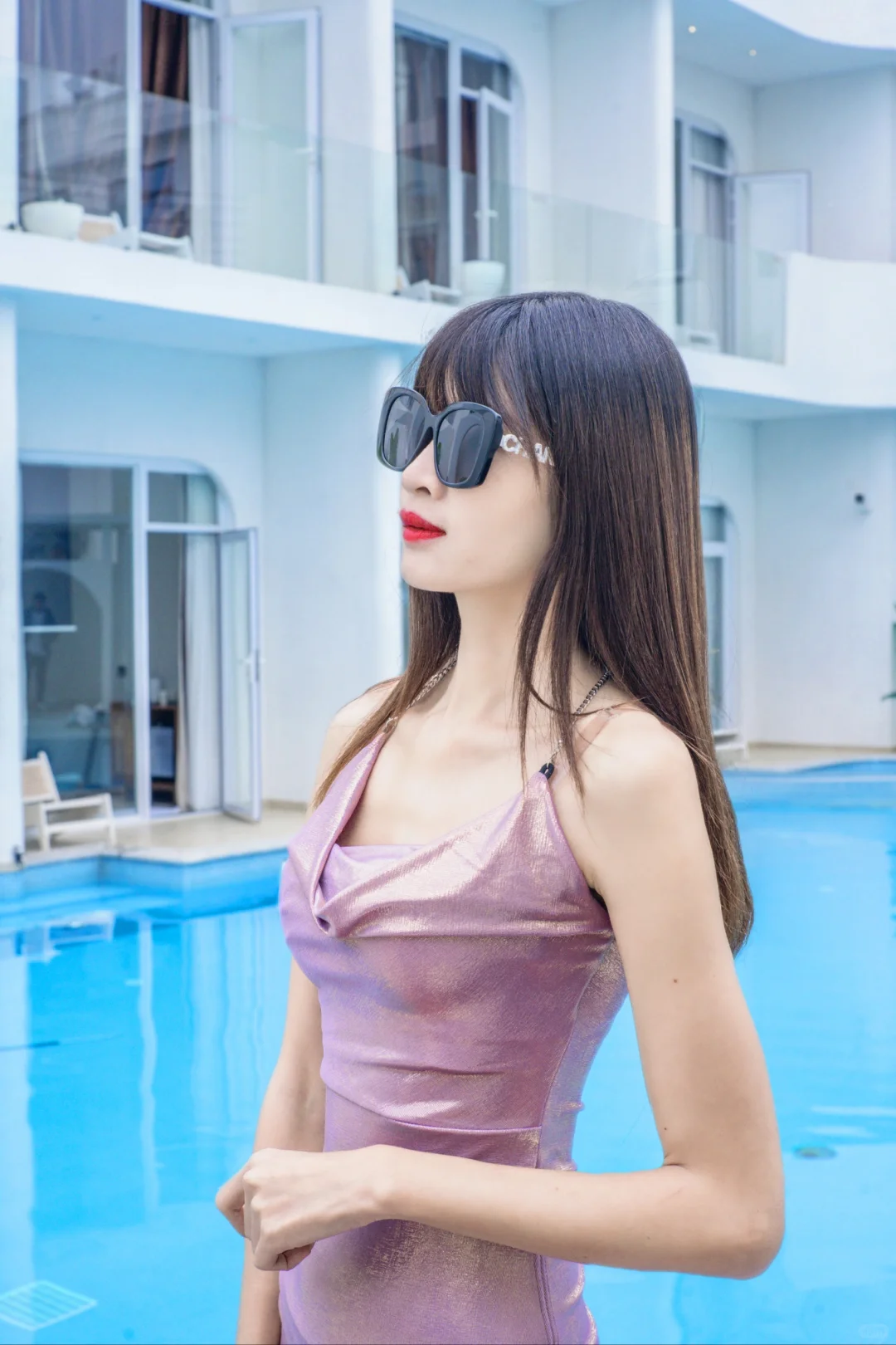 泳池是个景观池,搭配独栋白色建筑好出片,俯拍又是另外一种感觉,各个角度都能拍出度假感大片。