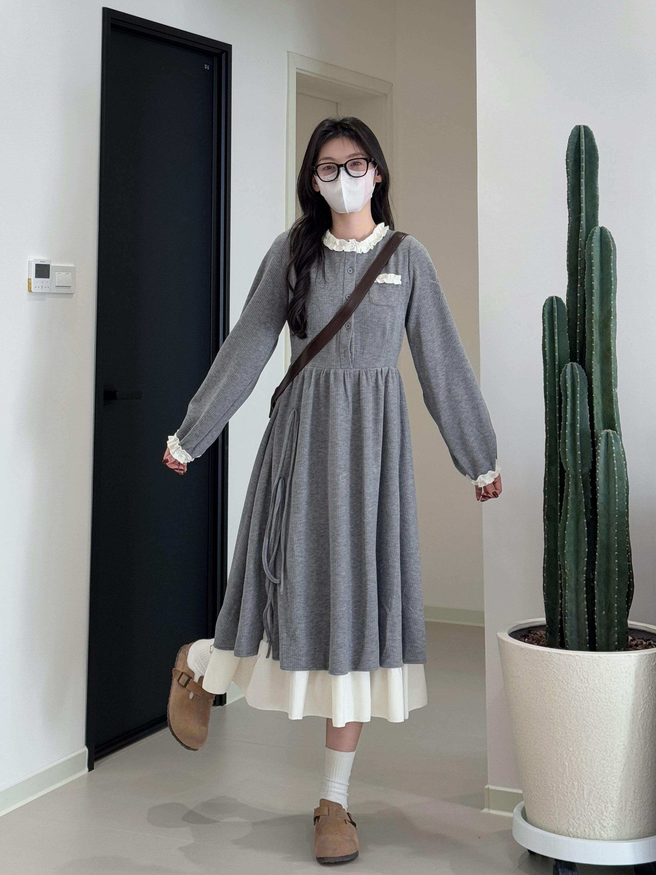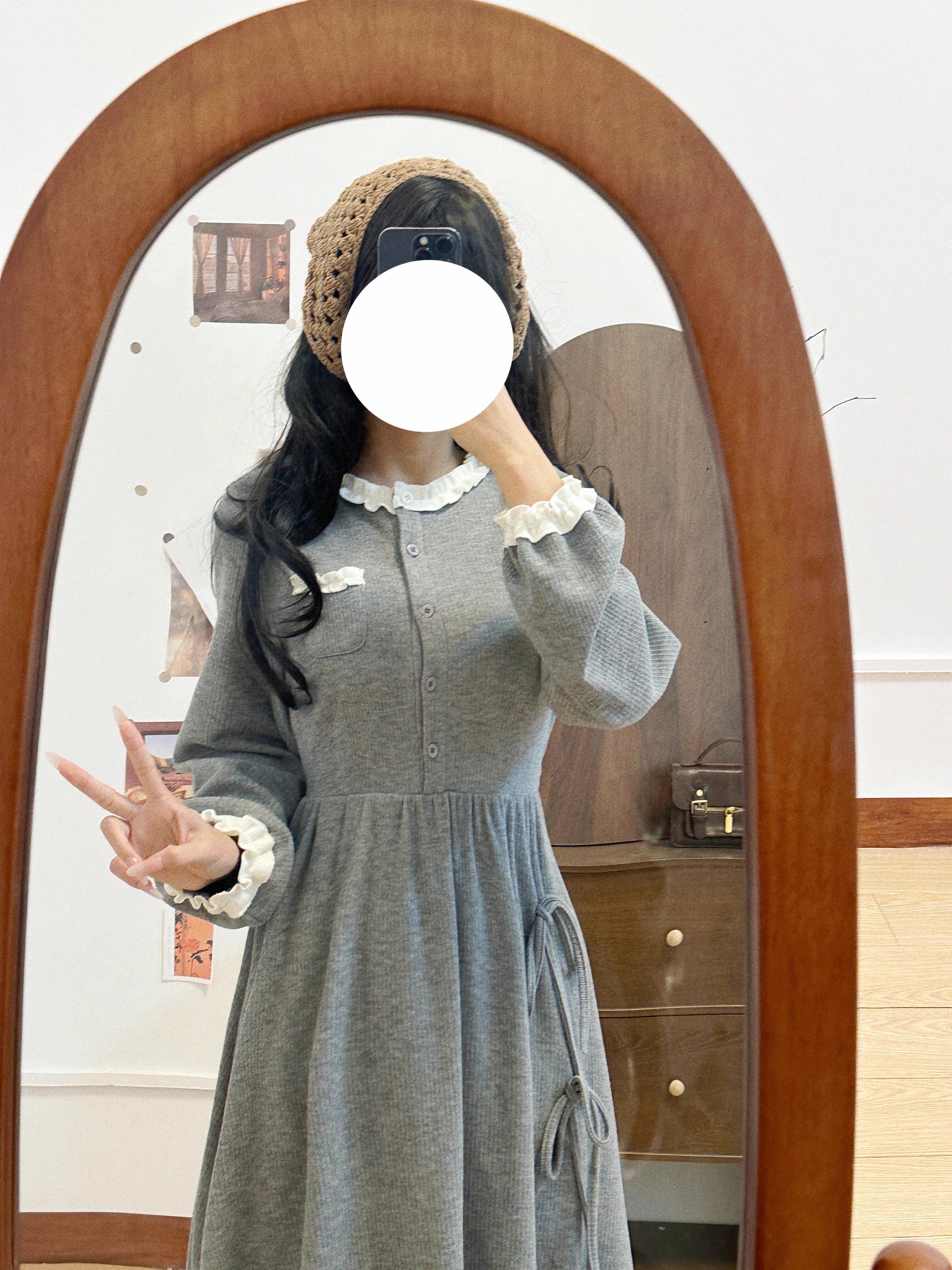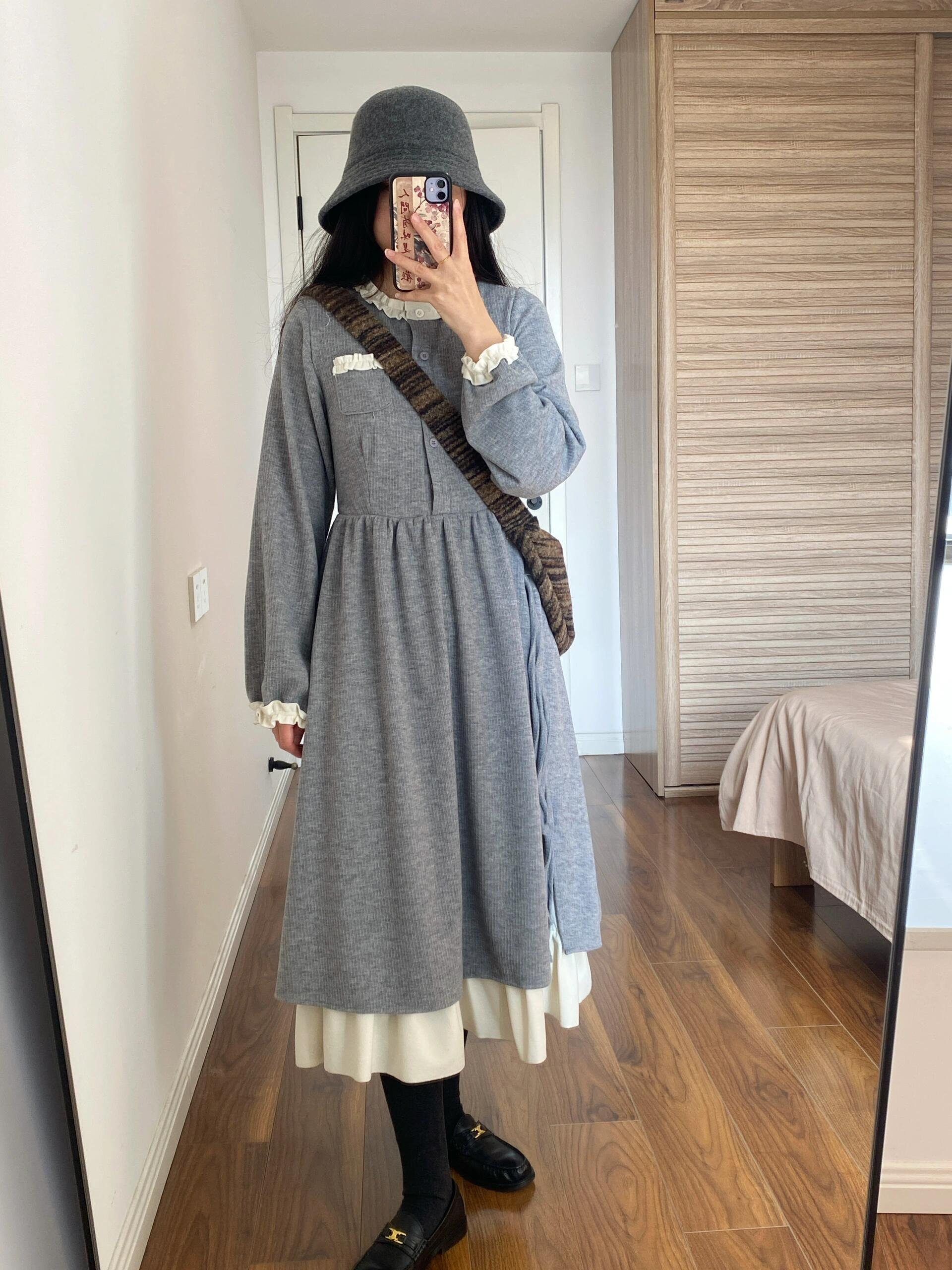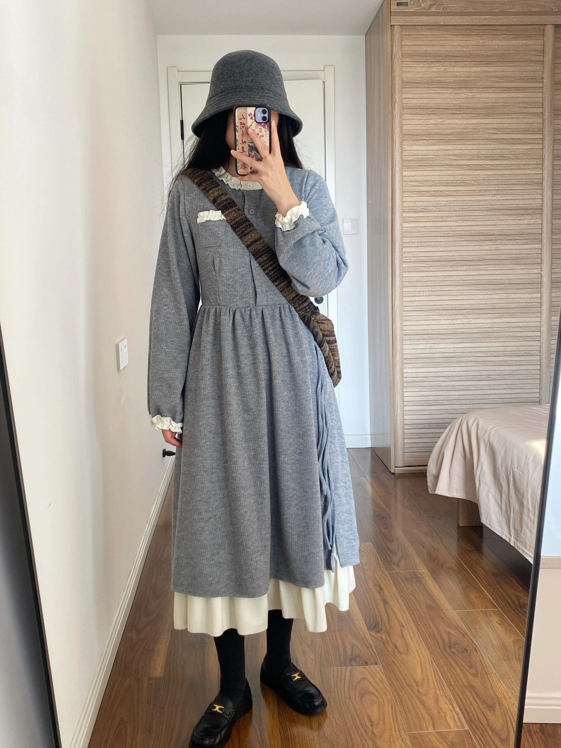 2025新款过年法式灰色针织连衣裙子女秋冬高级感穿搭大衣内搭长裙