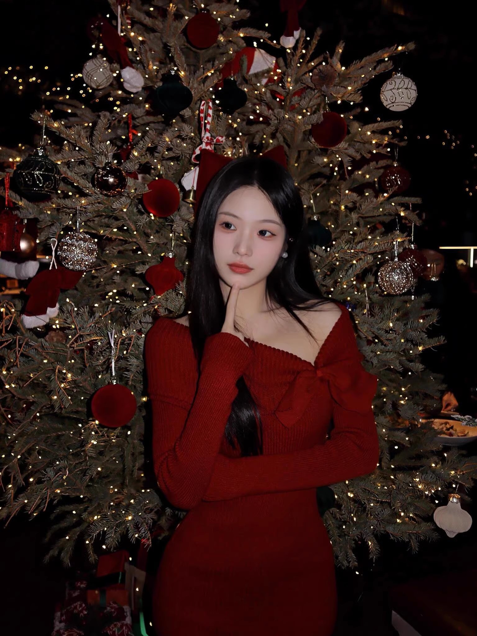 2025秋冬新款针织一字肩红色新年战袍连衣裙子女内搭打底包臀短裙