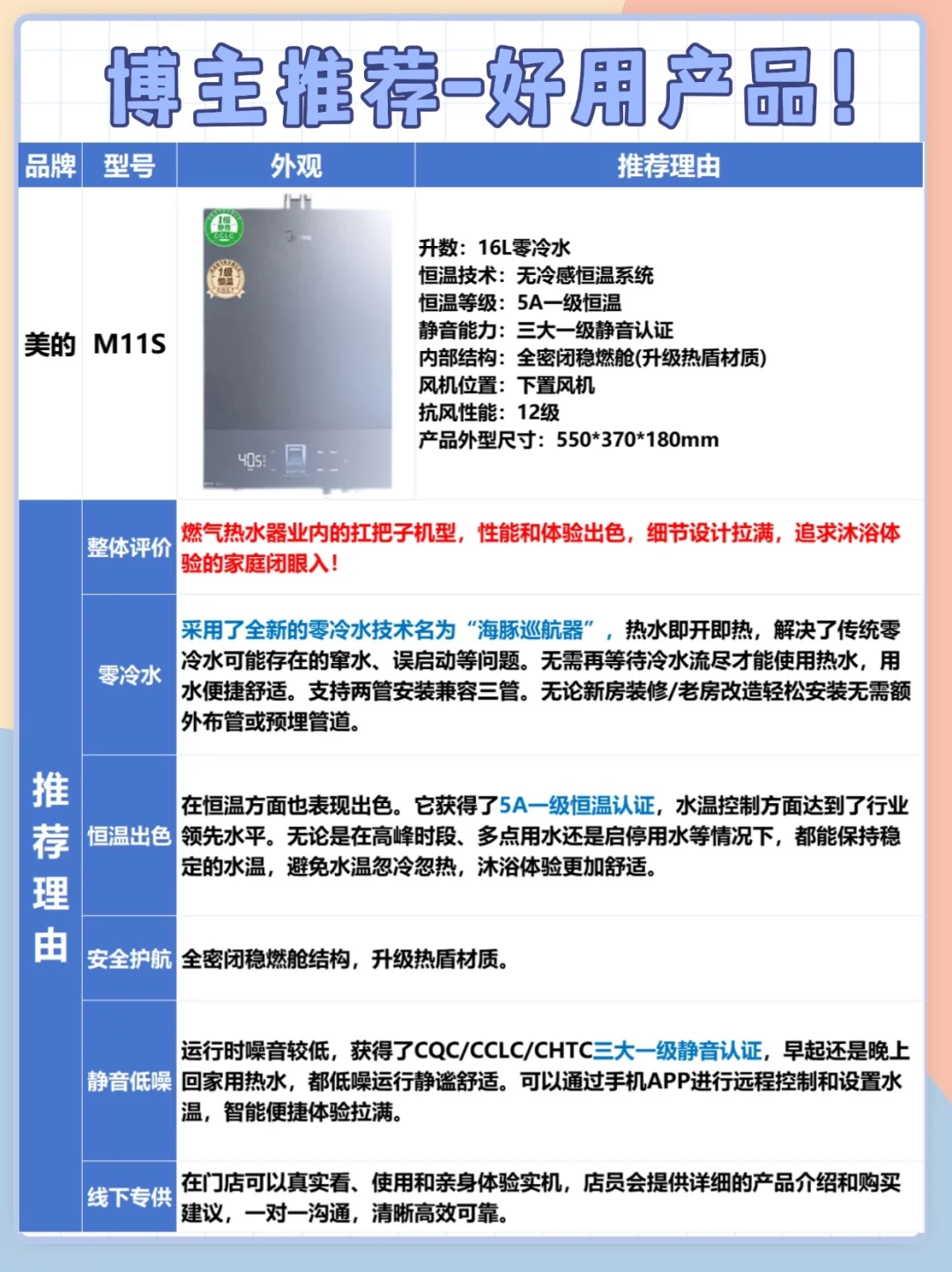 燃气热水器优秀机型郑重推荐:美的M11S无冷感燃气热水器,综合功能、价格、服务体验多方面剖析推荐。