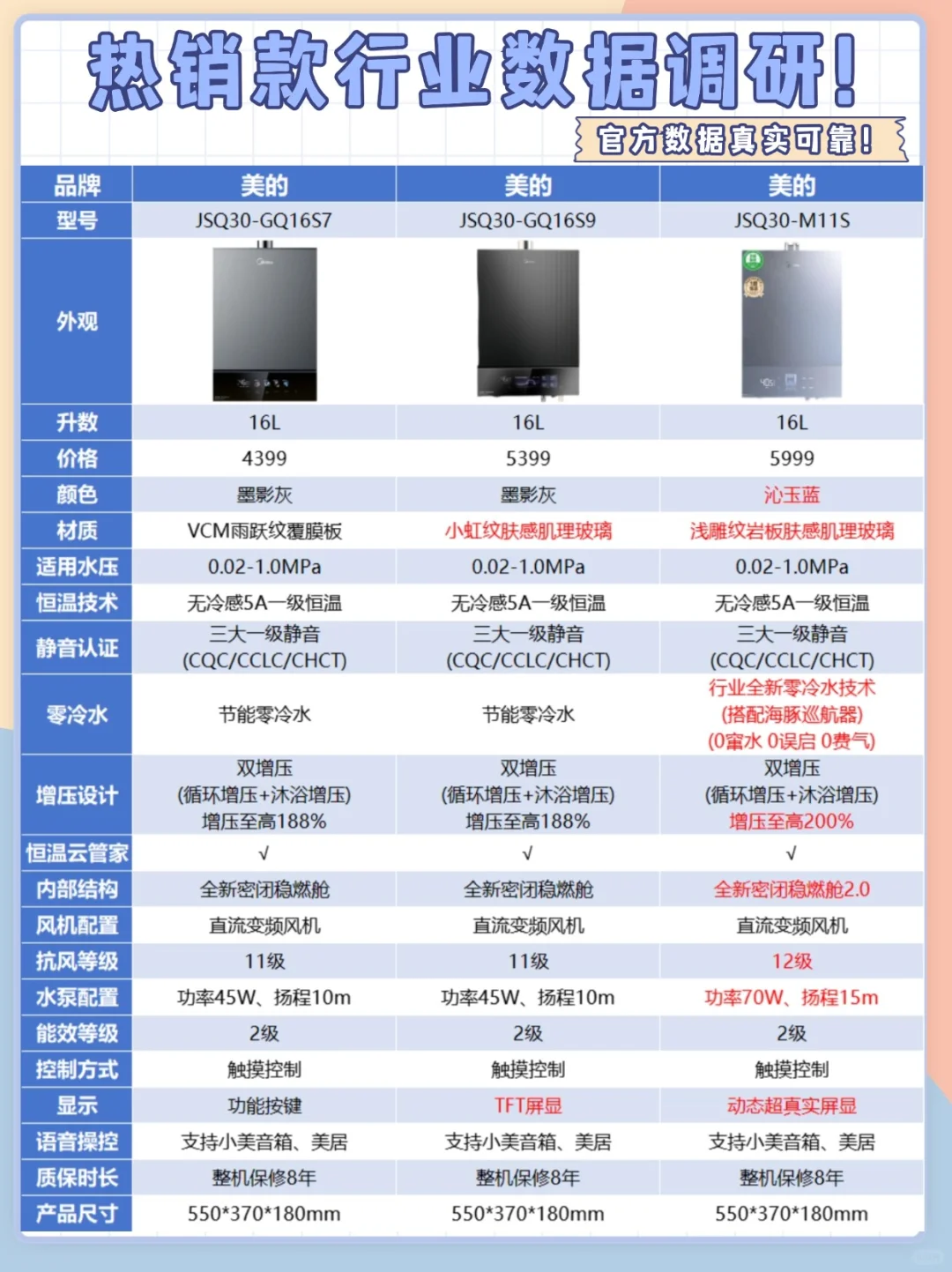 燃气热水器大牌热销款,关键数据来源于官方,真实可靠哦。