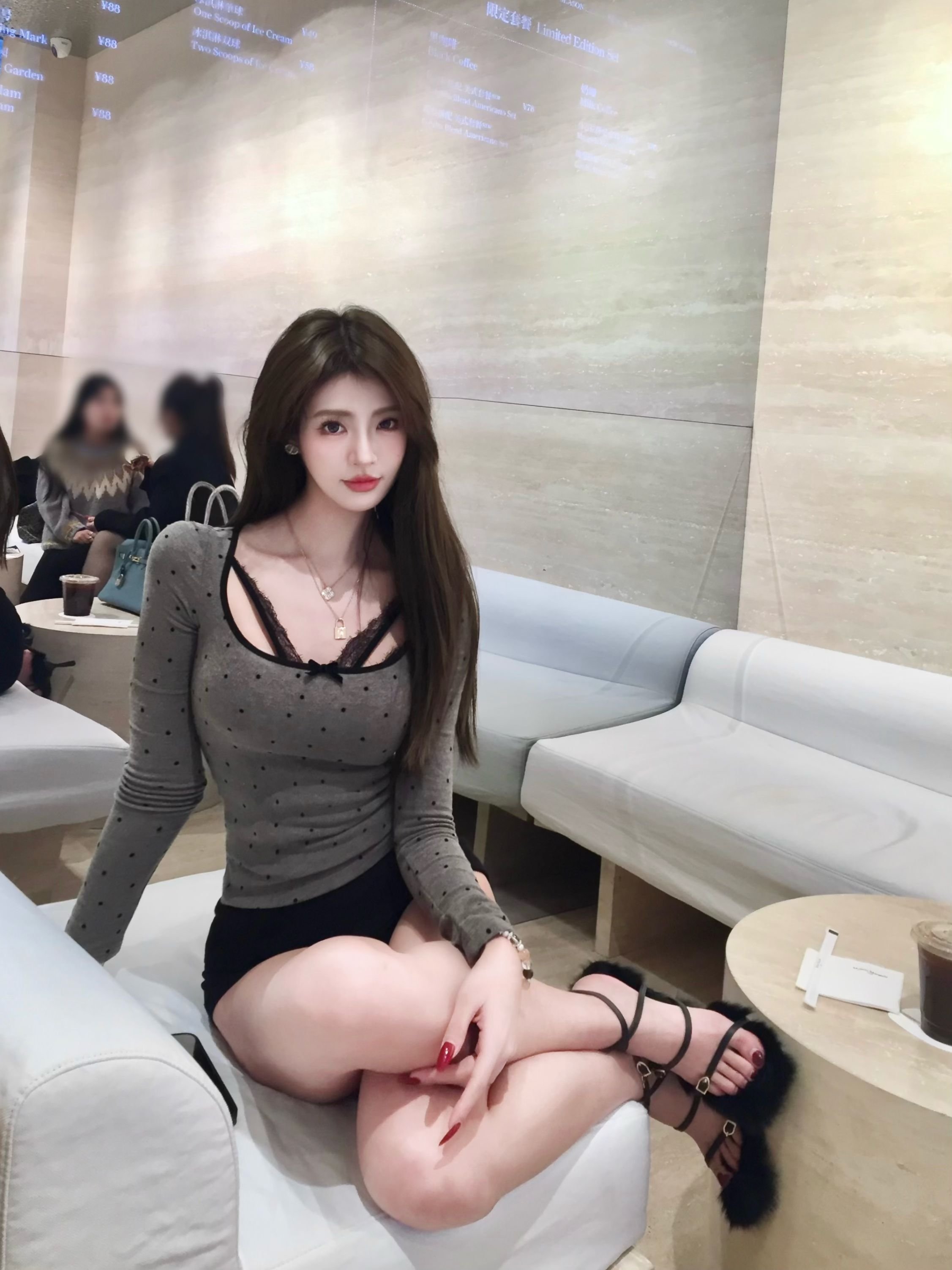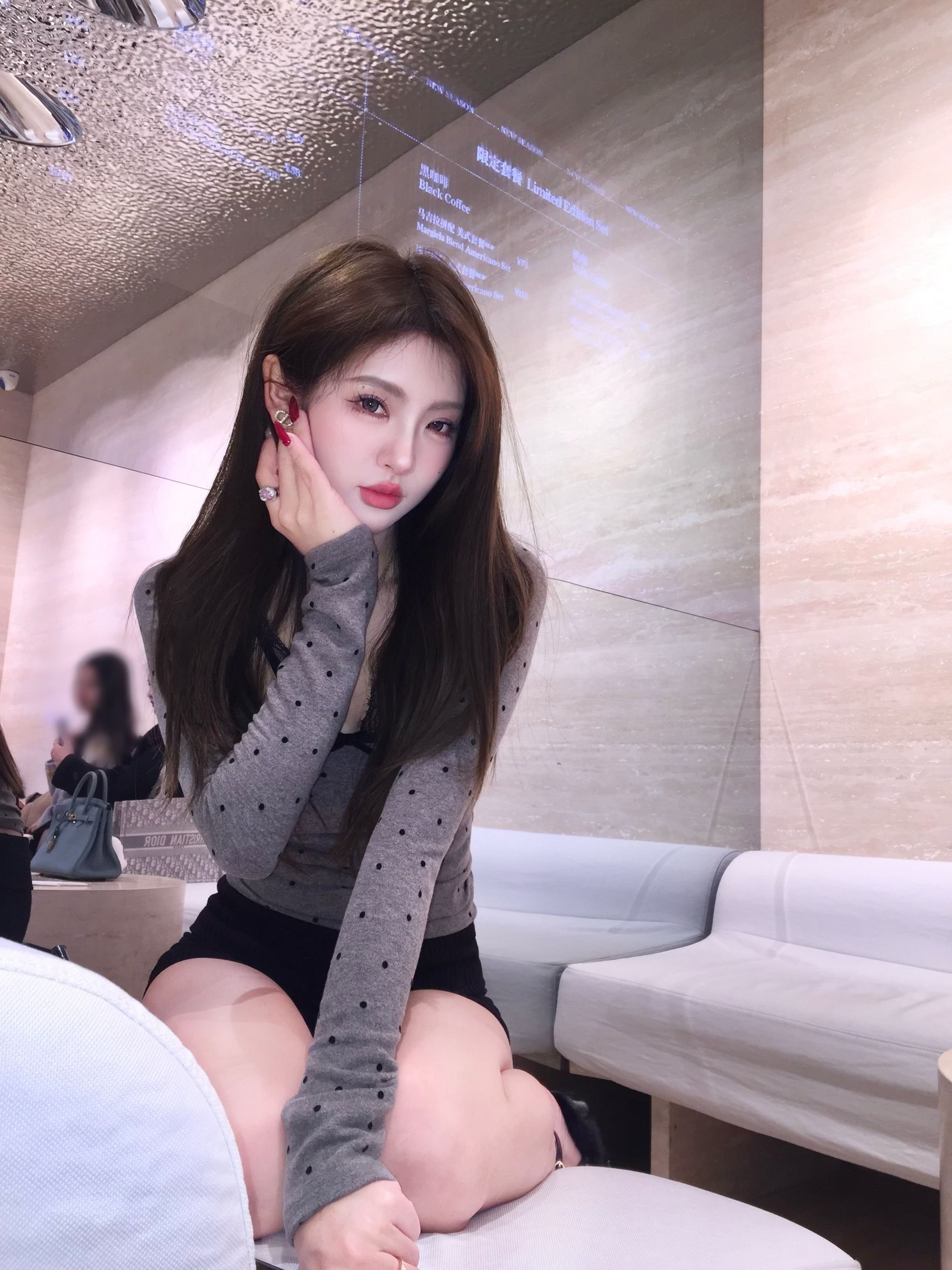 美式辣妹灰色波点大领口长袖t恤小个子打底