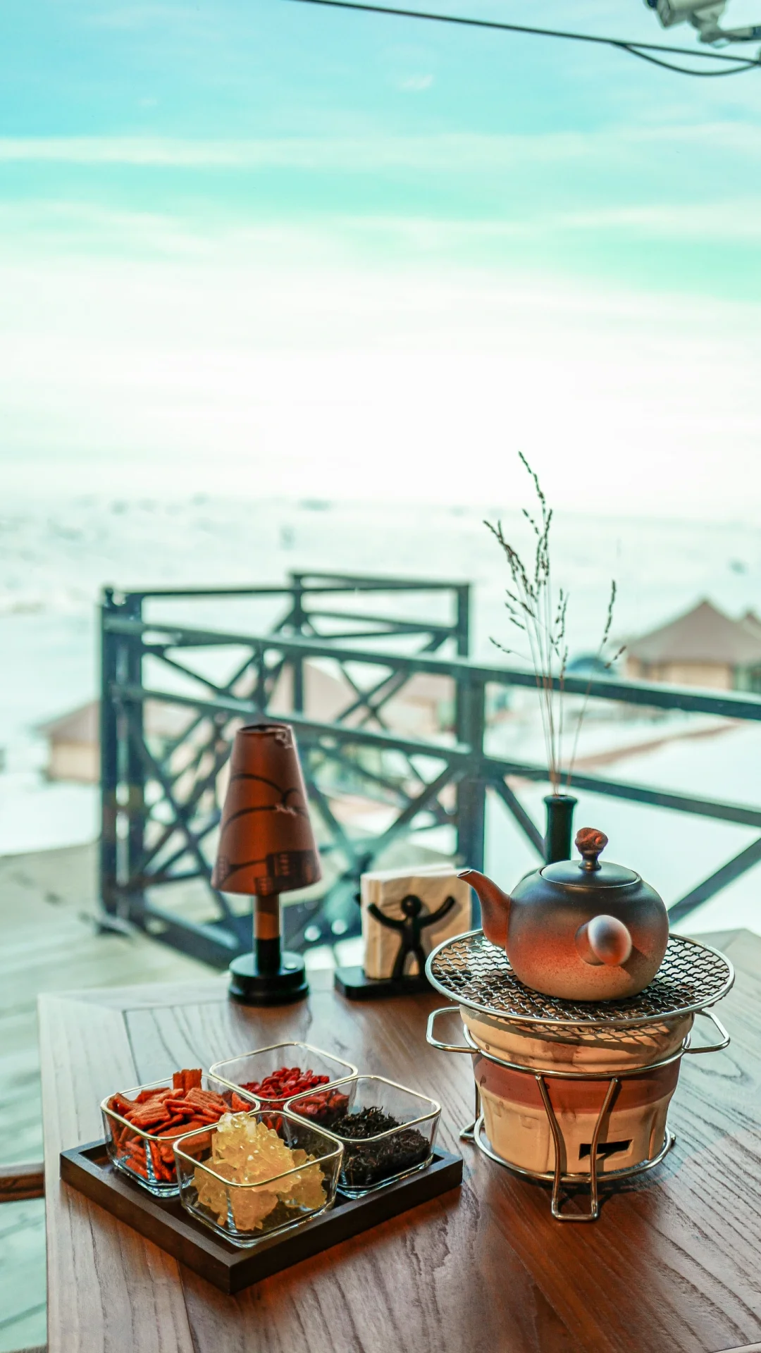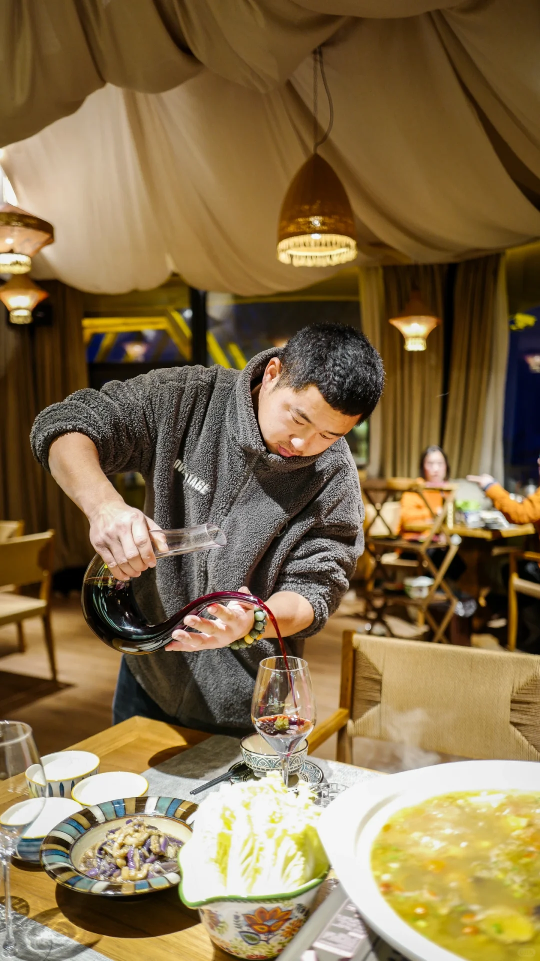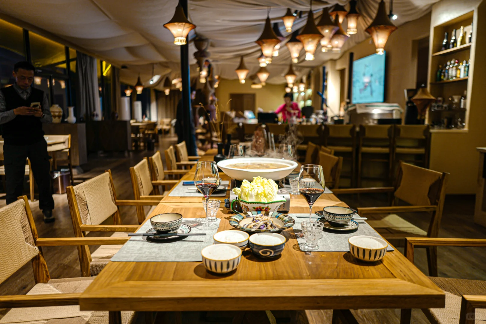 傍晚酒店还安排了围炉煮茶,晚餐预订了一个土鸡锅,涮青菜,配红酒,完美的元旦之夜。