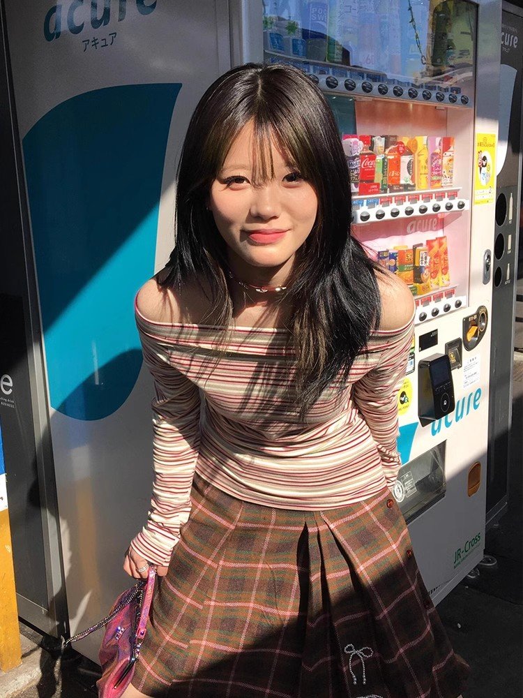 韩系彩色条纹一字领低领长袖t恤小个子打底