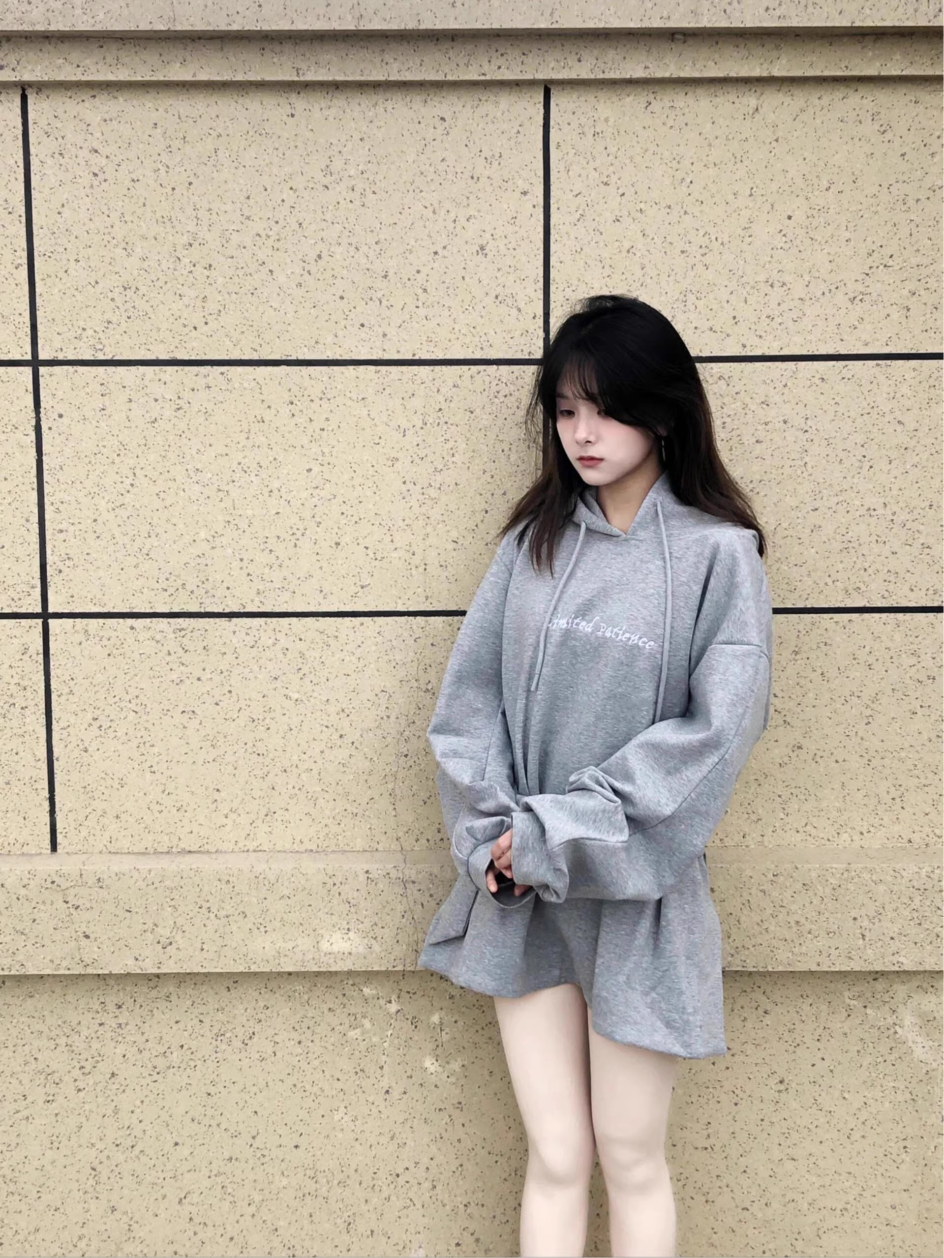 美式减龄灰色小个子卫衣连衣裙学院风短裙