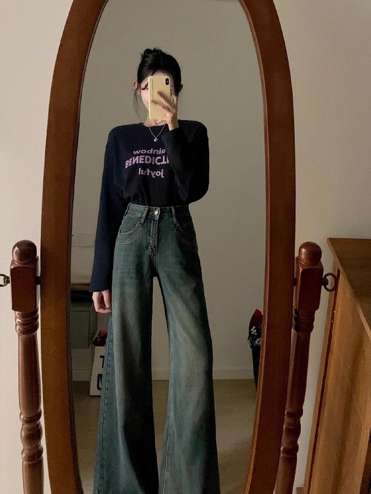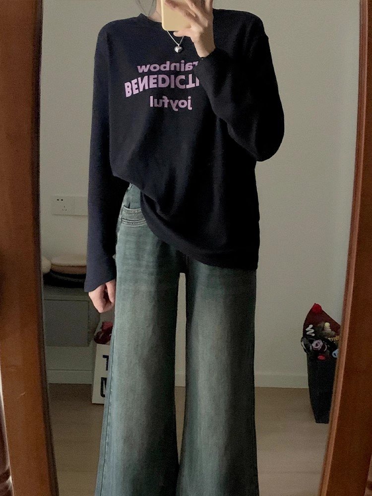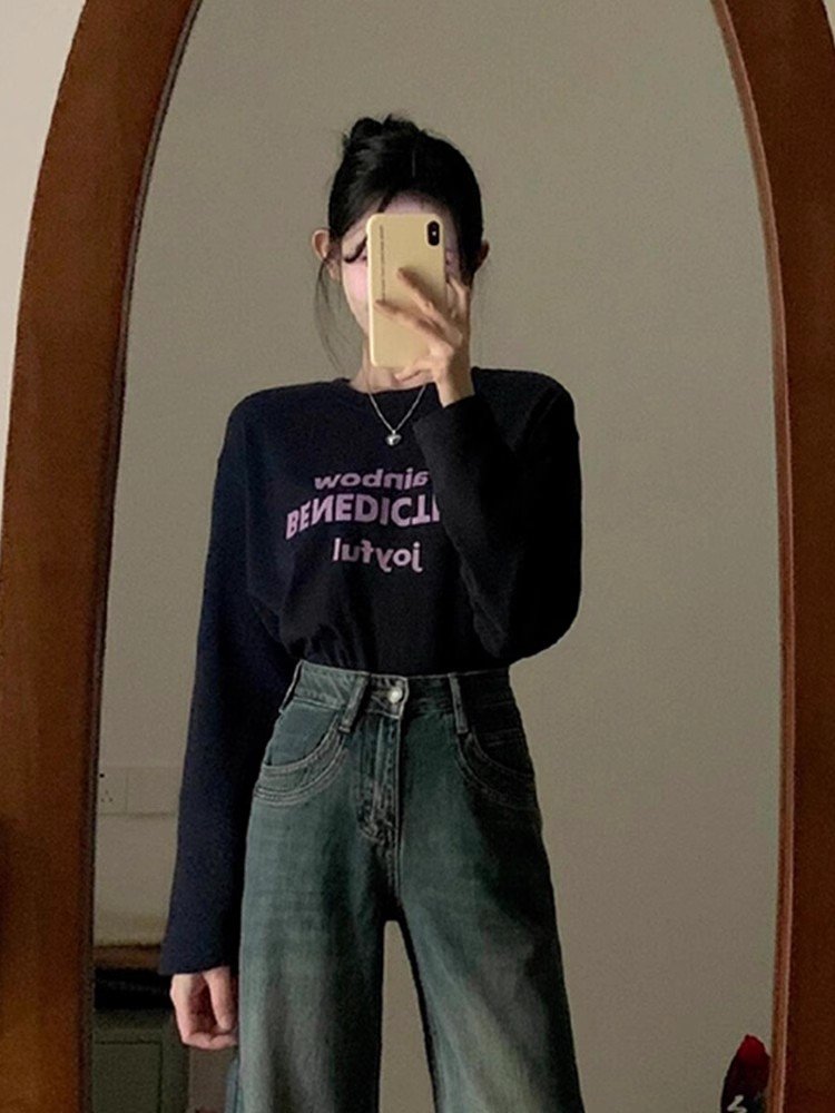 韩系高级感穿搭字母印花宽松长袖t恤女春秋