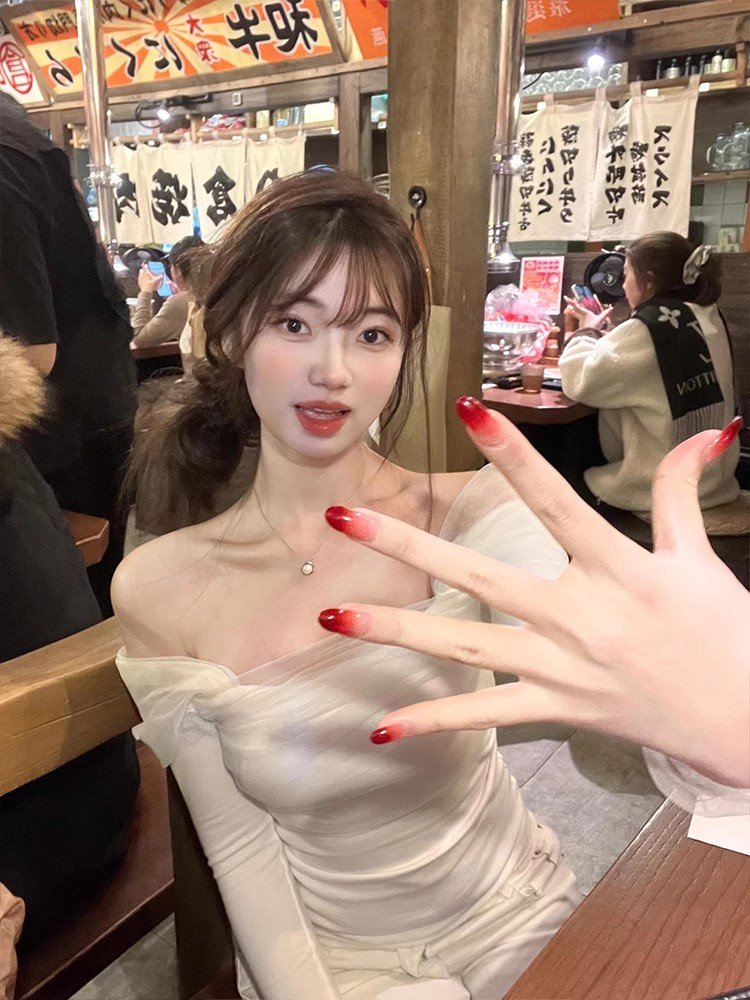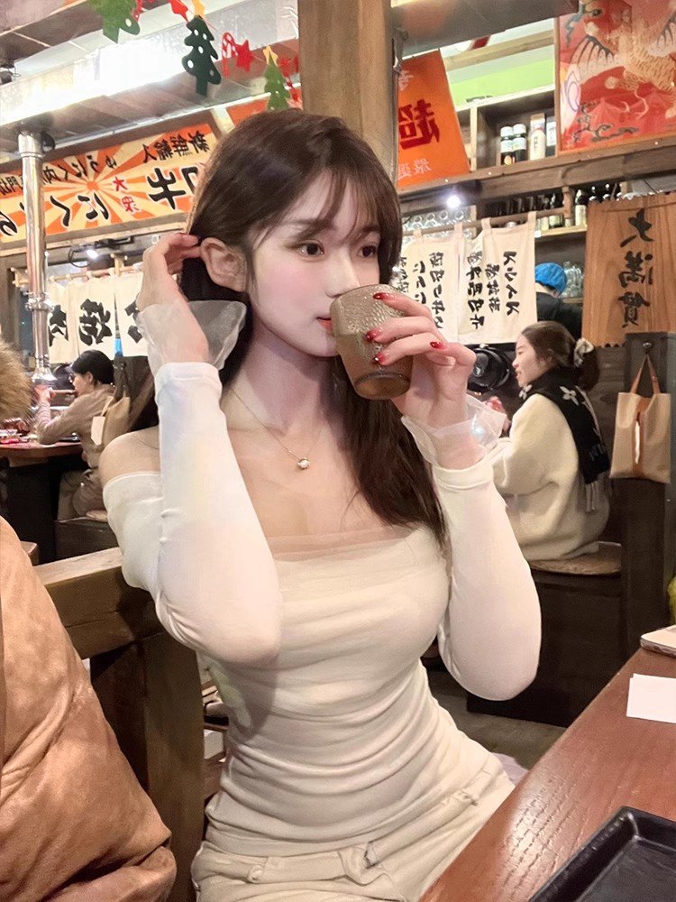 法式蕾丝拼接一字肩修身打底衫上衣女春秋季