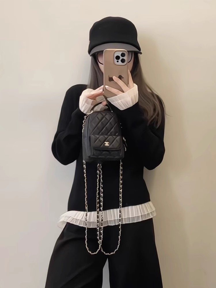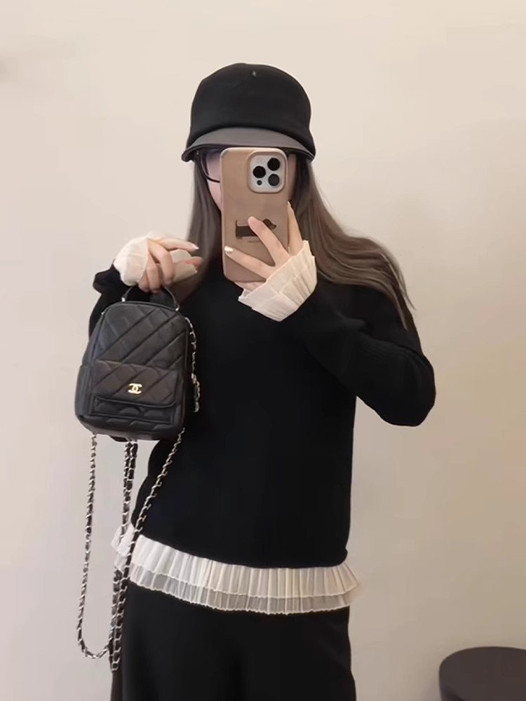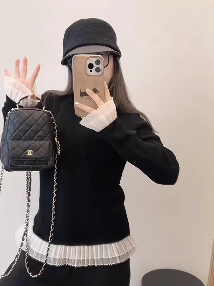 韩系内搭黑色长袖t恤女春秋蕾丝拼接下摆打